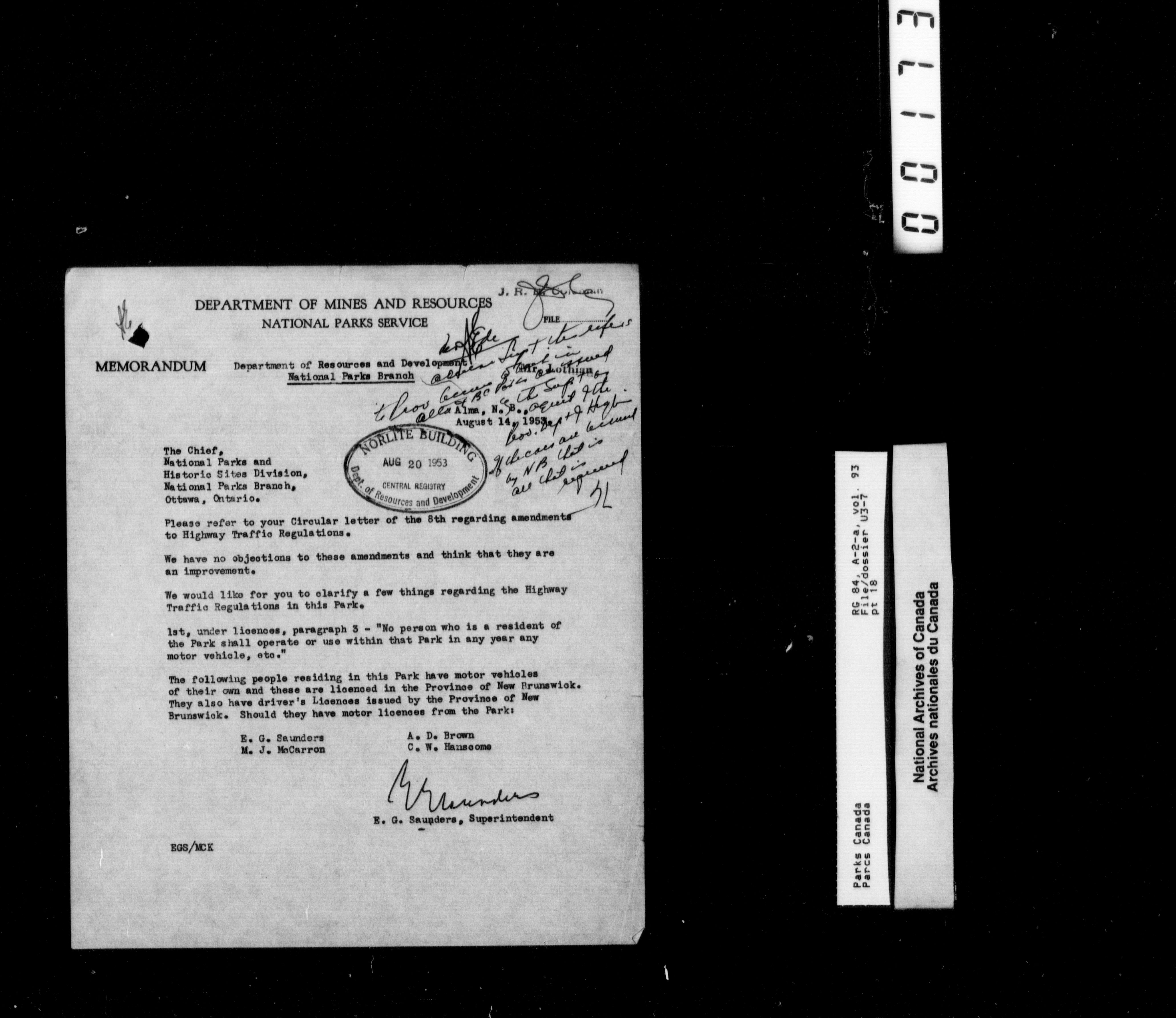 Department of Canadian Heritage, Canadian Parks Service : Park/subject classification system : T-12871