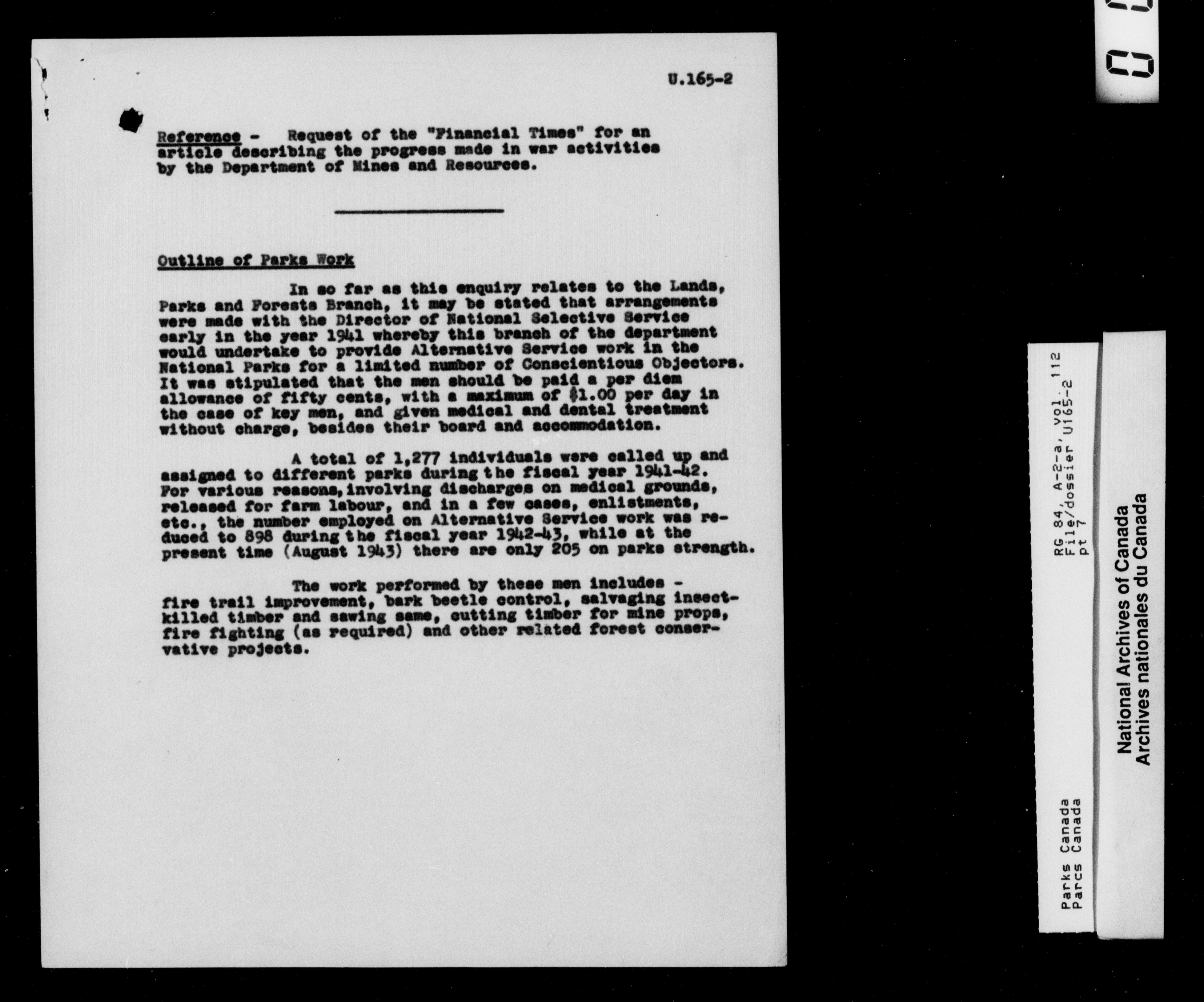 Department of Canadian Heritage, Canadian Parks Service : Park/subject classification system : T-12890