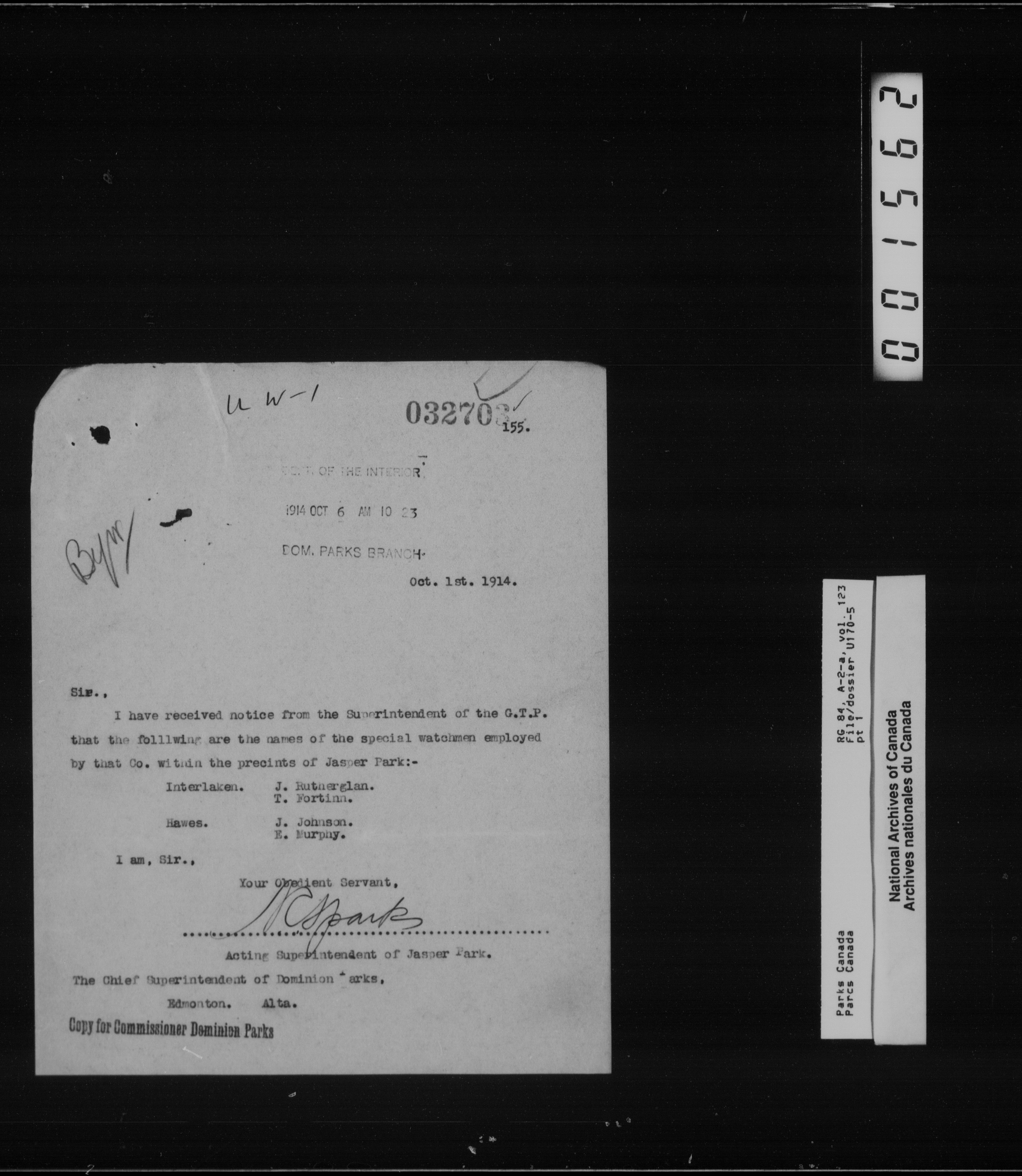 Department of Canadian Heritage, Canadian Parks Service : Park/subject classification system - 12901