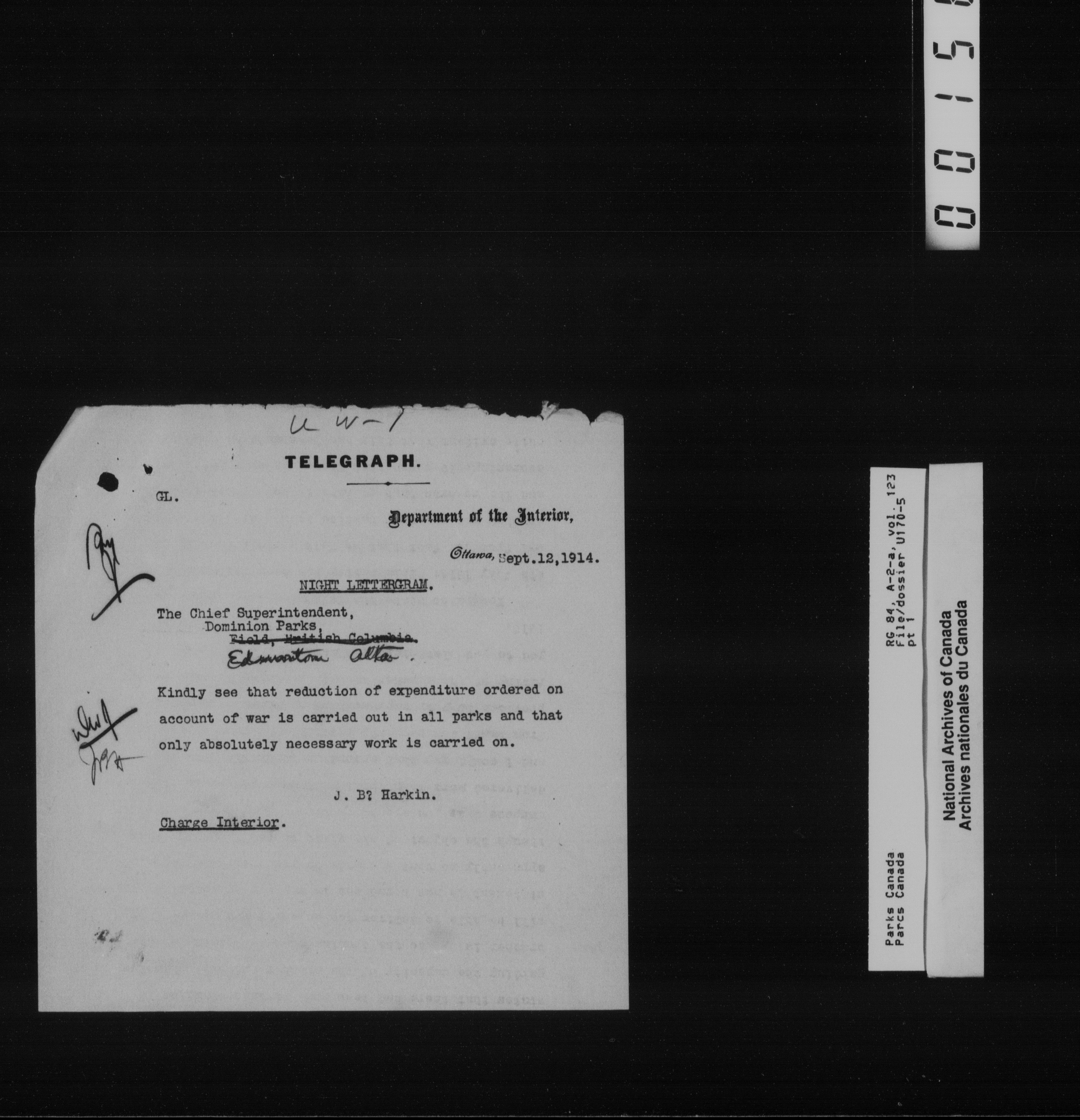 Department of Canadian Heritage, Canadian Parks Service : Park/subject classification system - 12901