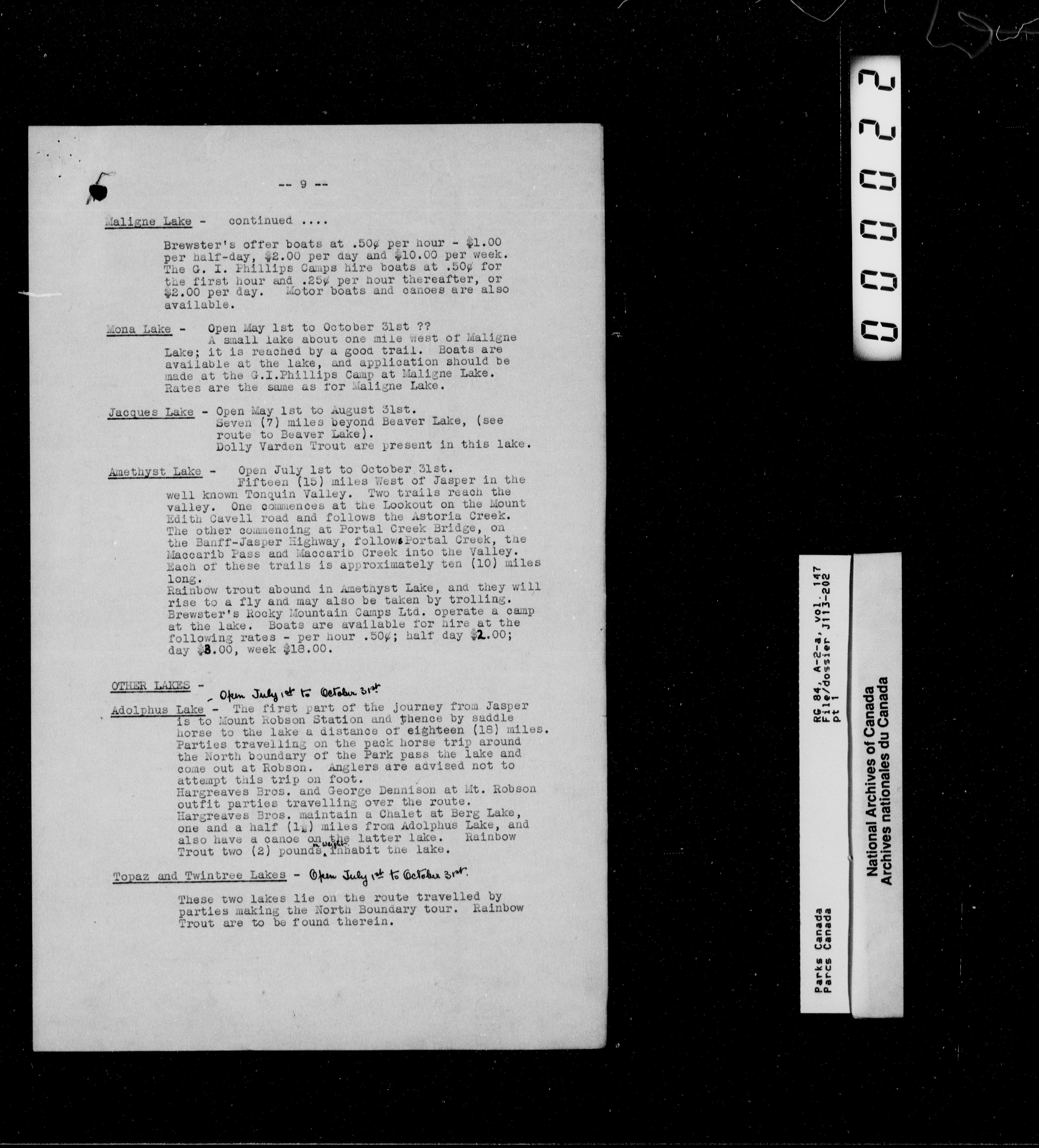 Department of Canadian Heritage, Canadian Parks Service : Park/subject classification system - 12908