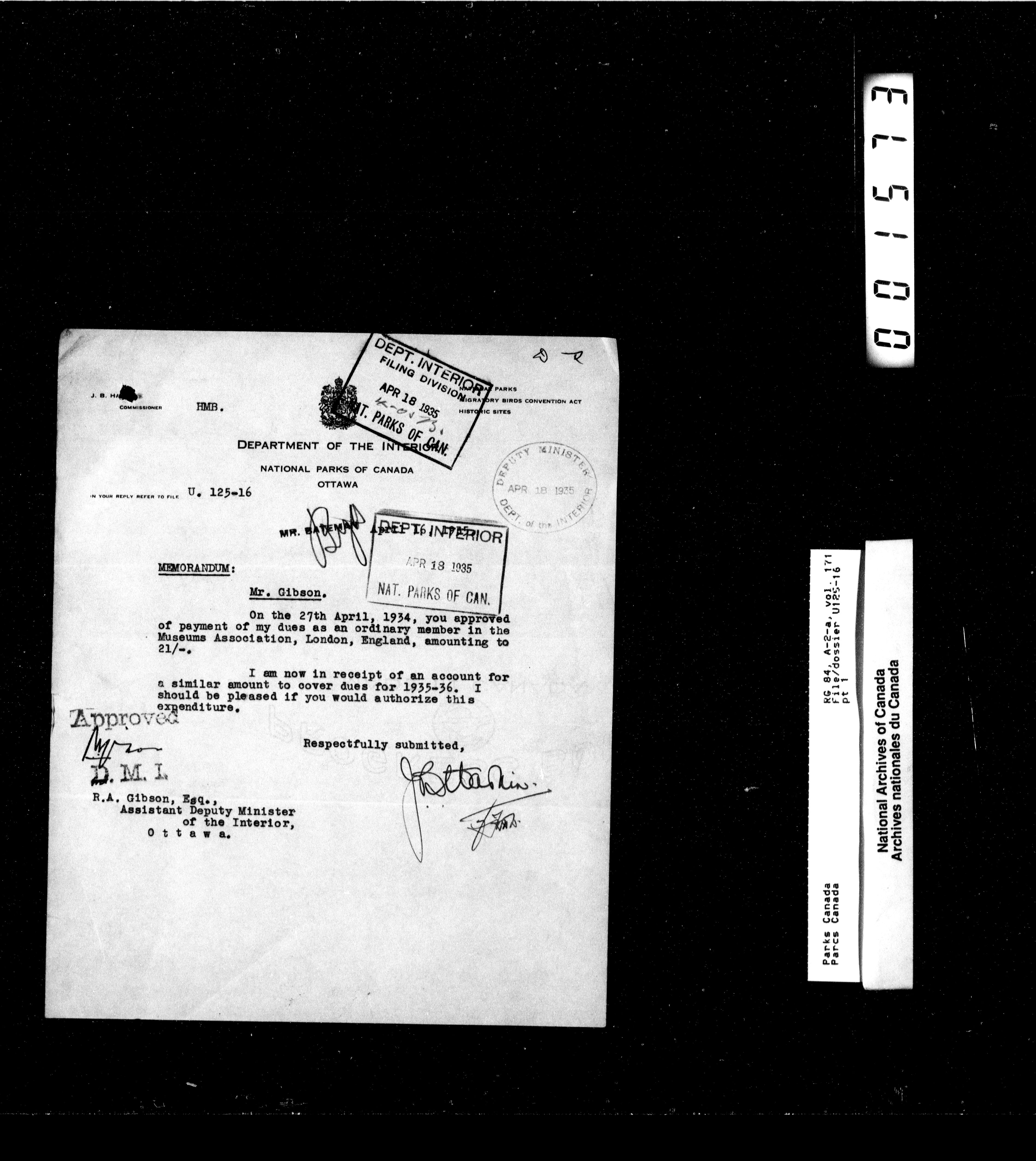 Department of Canadian Heritage, Canadian Parks Service : Park/subject classification system - 12925