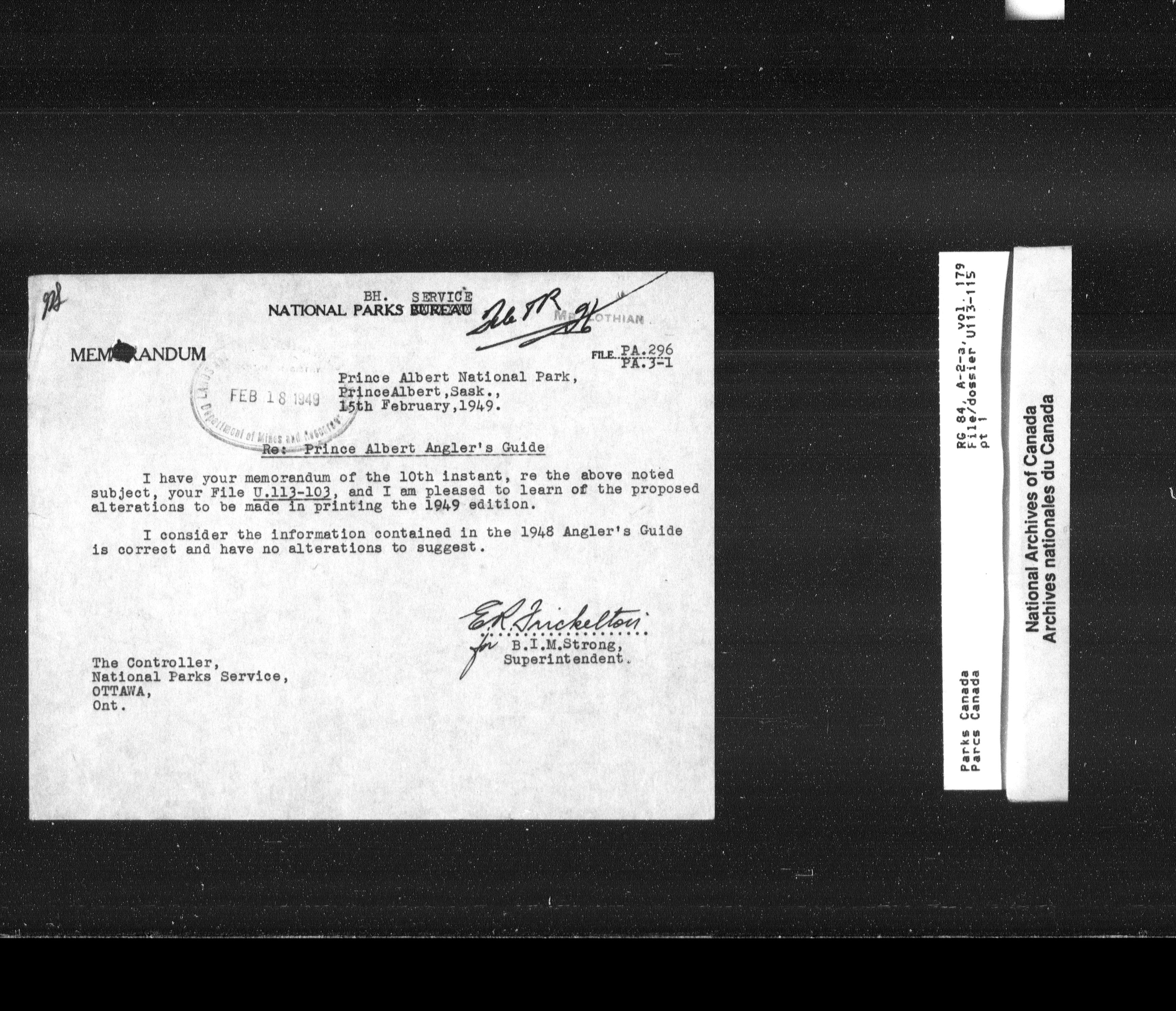 Department of Canadian Heritage, Canadian Parks Service : Park/subject classification system - 12935