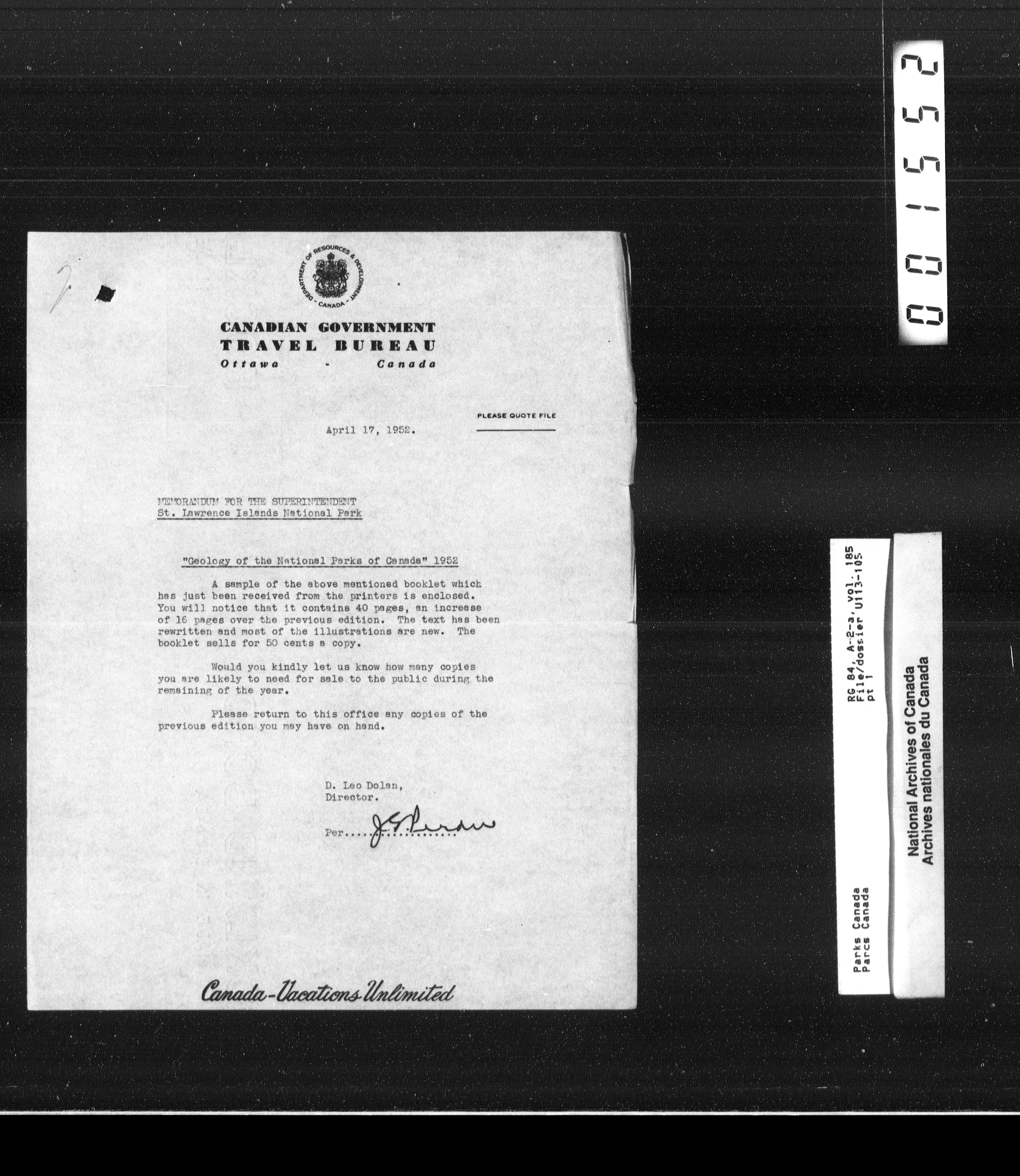 Department of Canadian Heritage, Canadian Parks Service : Park/subject classification system - 12937