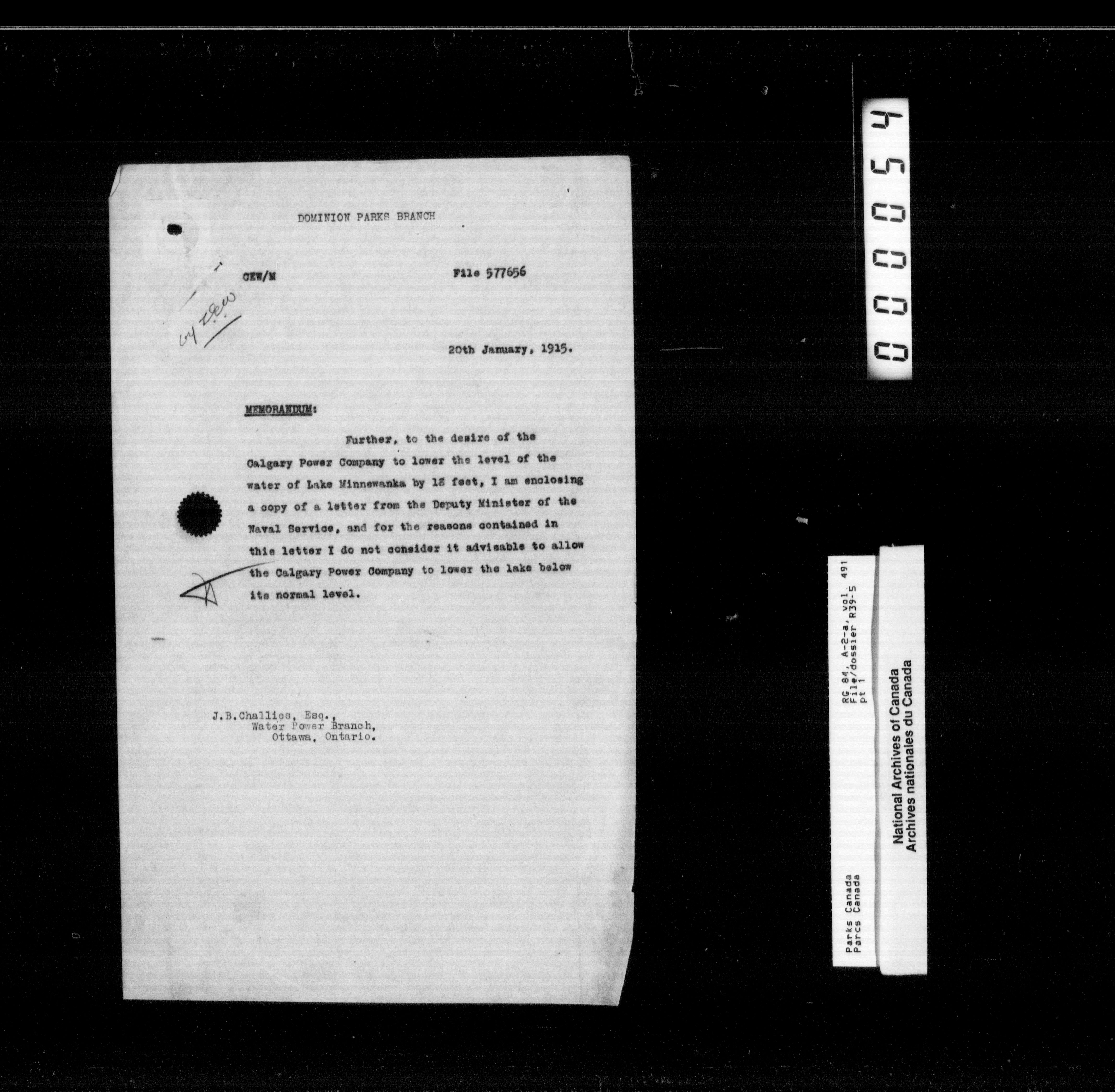 Department of Canadian Heritage, Canadian Parks Service : Park/subject classification system : T-12956