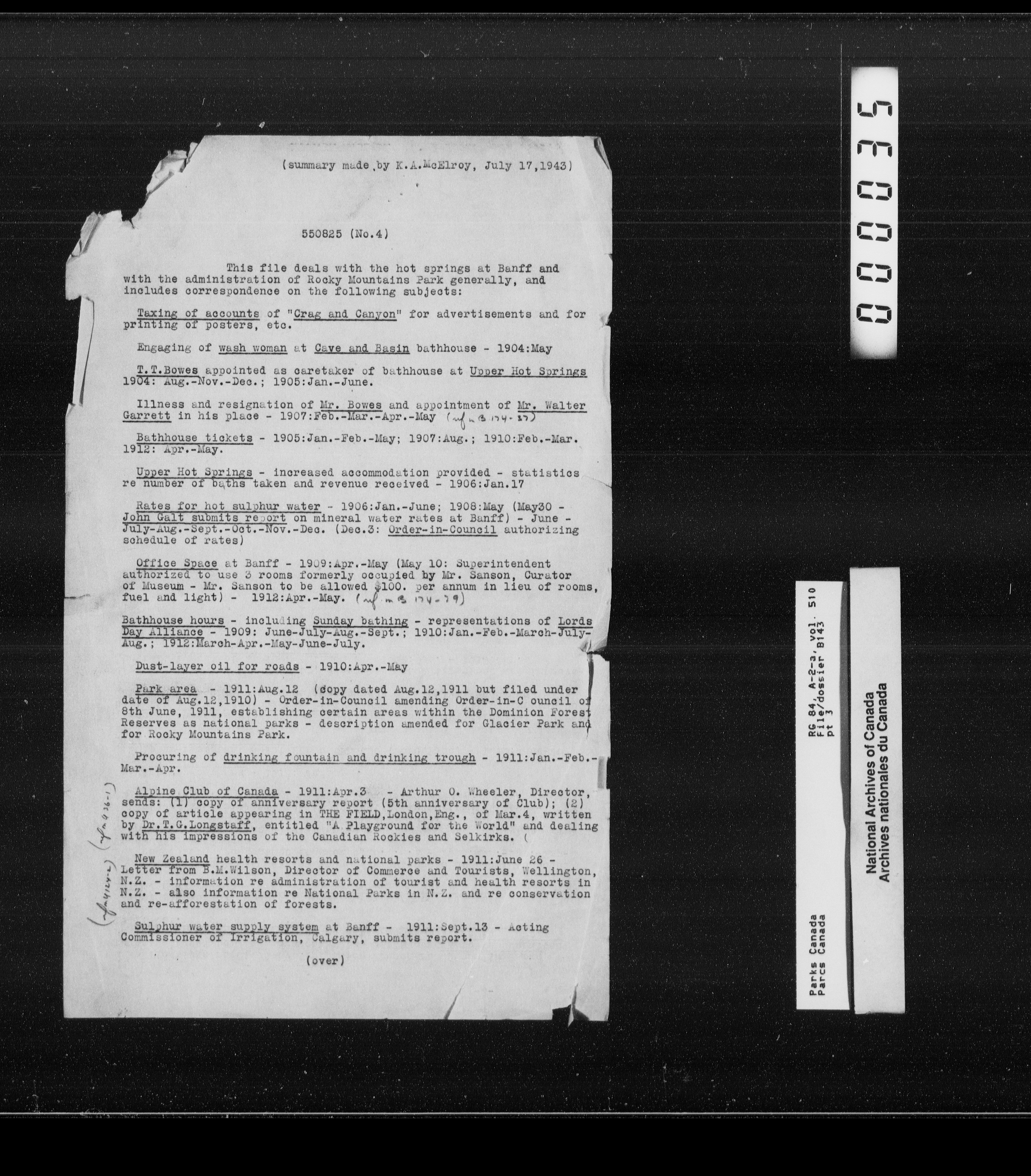 Department of Canadian Heritage, Canadian Parks Service : Park/subject classification system (Vol. 510, File B143, pt. 2 to Vol. 511, File B210-1, pt. 1) - 12973