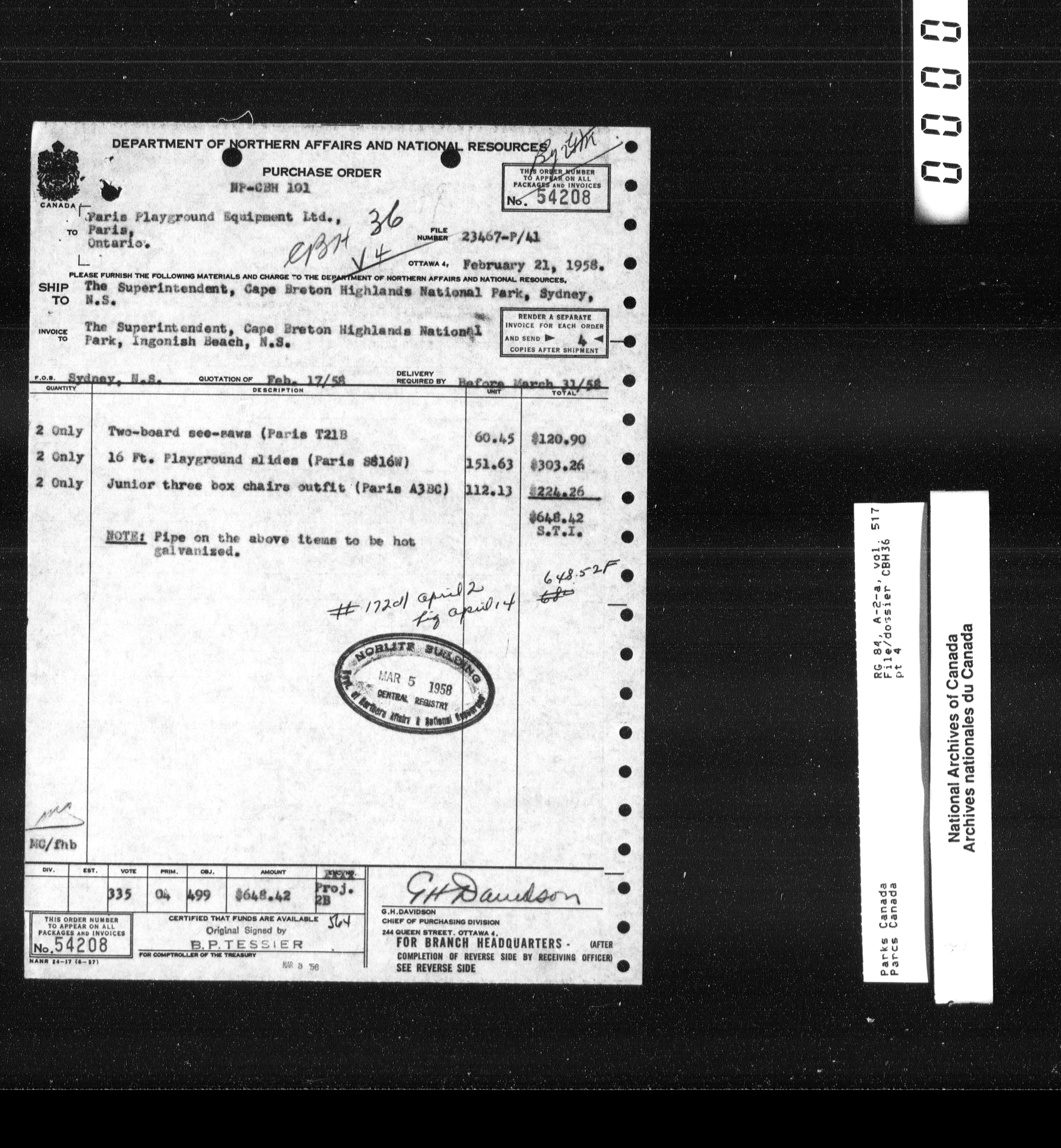 Department of Canadian Heritage, Canadian Parks Service : Park/subject classification system - 12978
