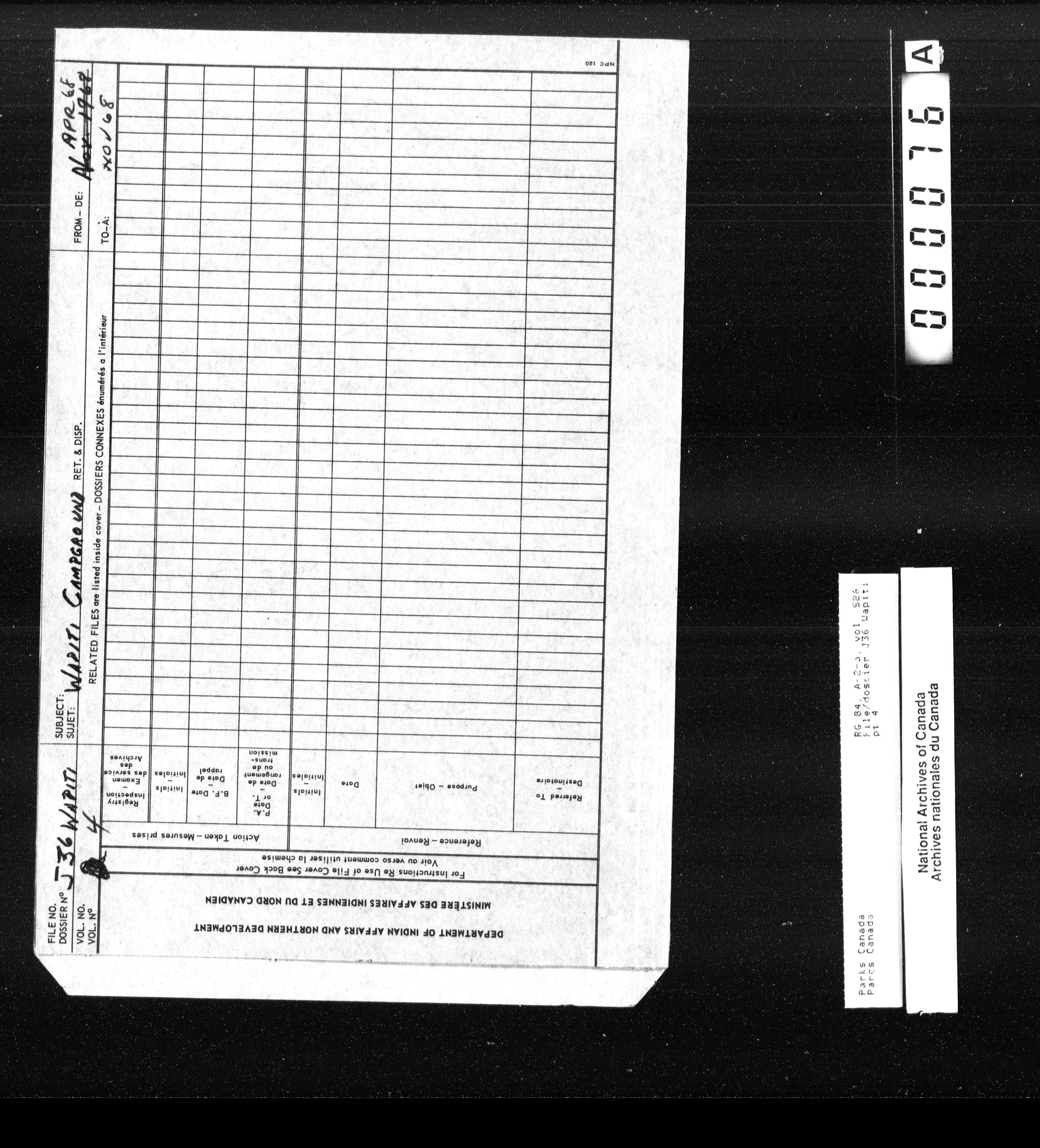 Department of Canadian Heritage, Canadian Parks Service : Park/subject classification system - 12983
