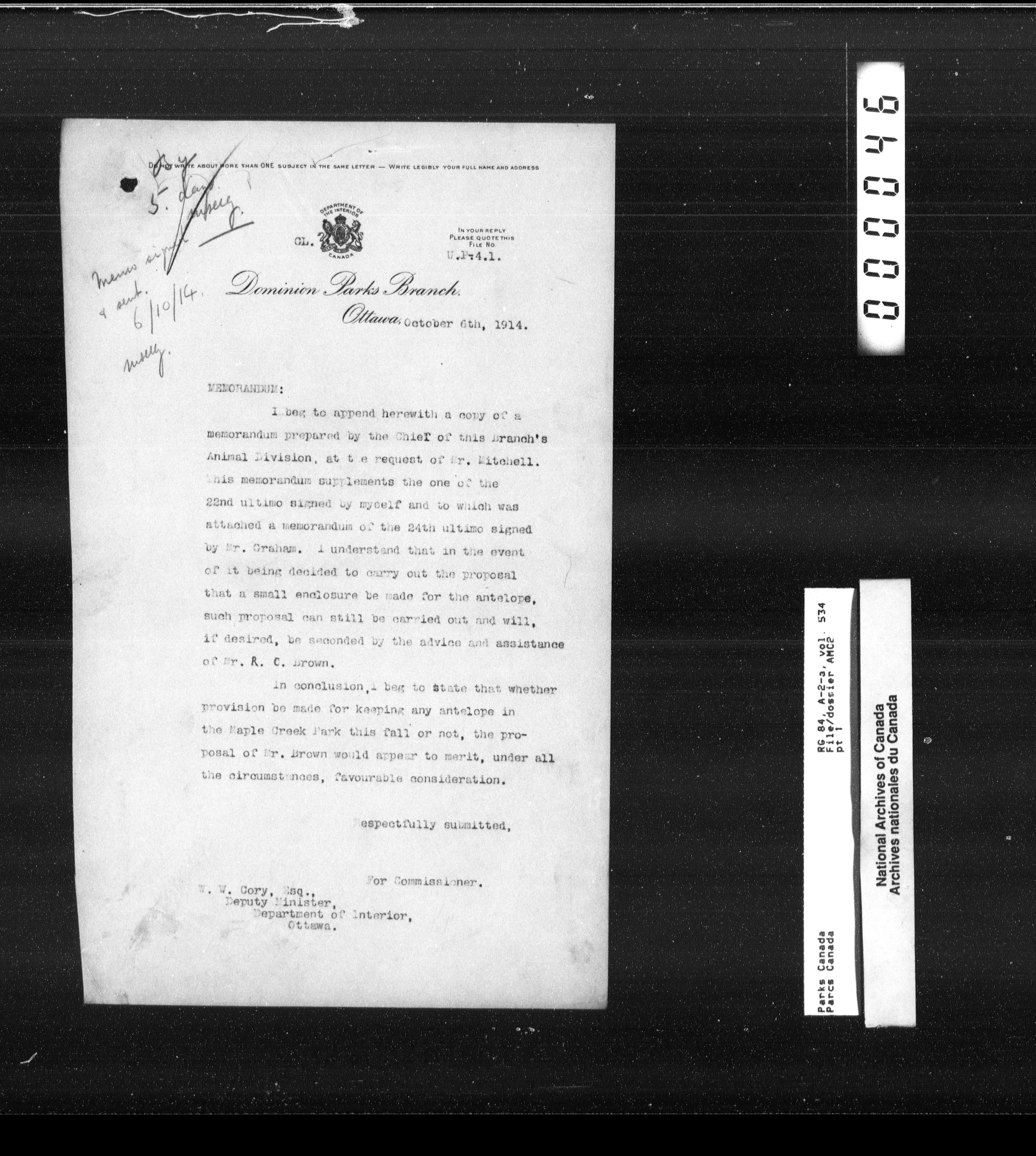 Department of Canadian Heritage, Canadian Parks Service : Park/subject classification system - 12990