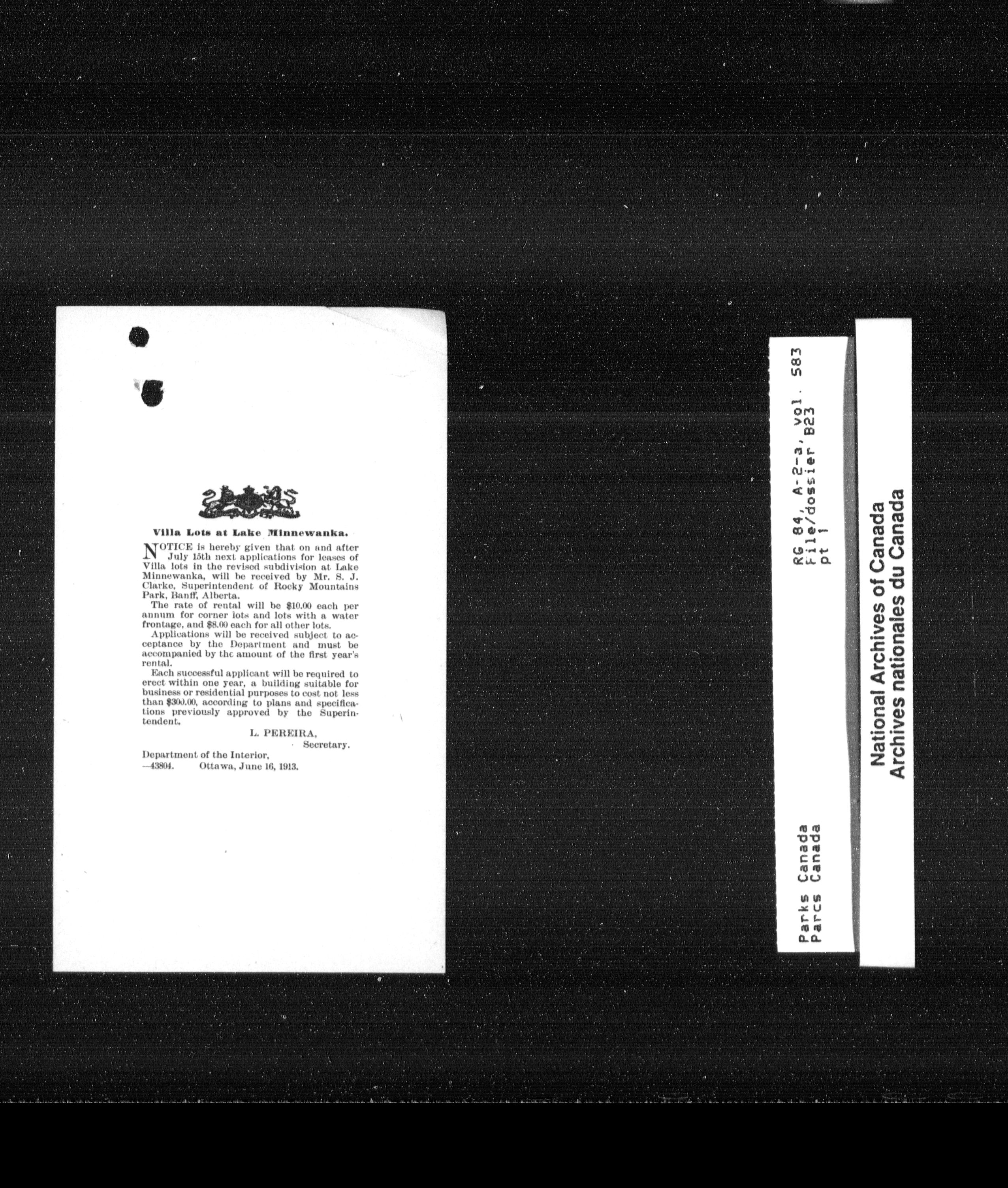 Department of Canadian Heritage, Canadian Parks Service : Park/subject classification system : T-12994