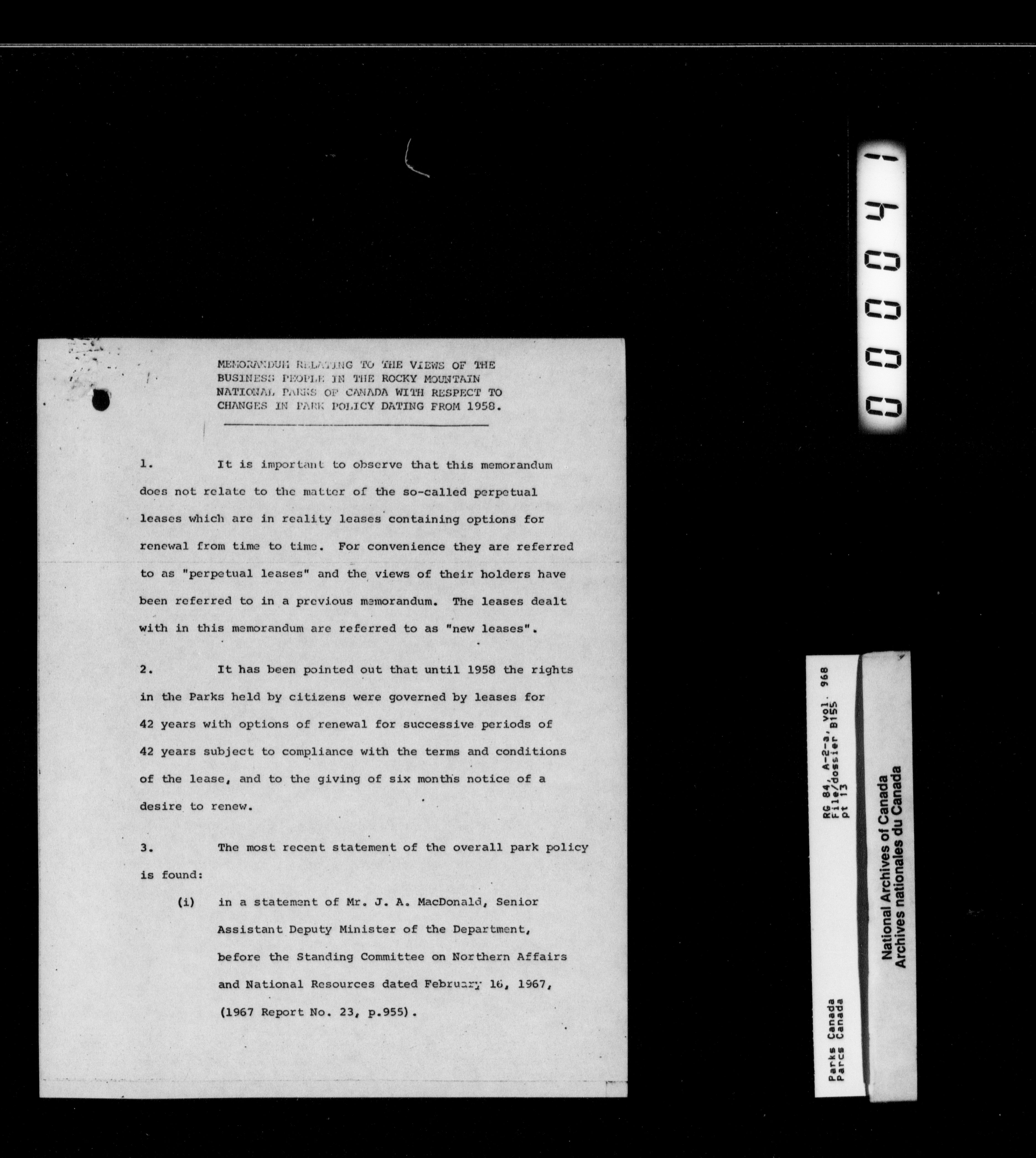 Department of Canadian Heritage, Canadian Parks Service : Park/subject classification system - 13020