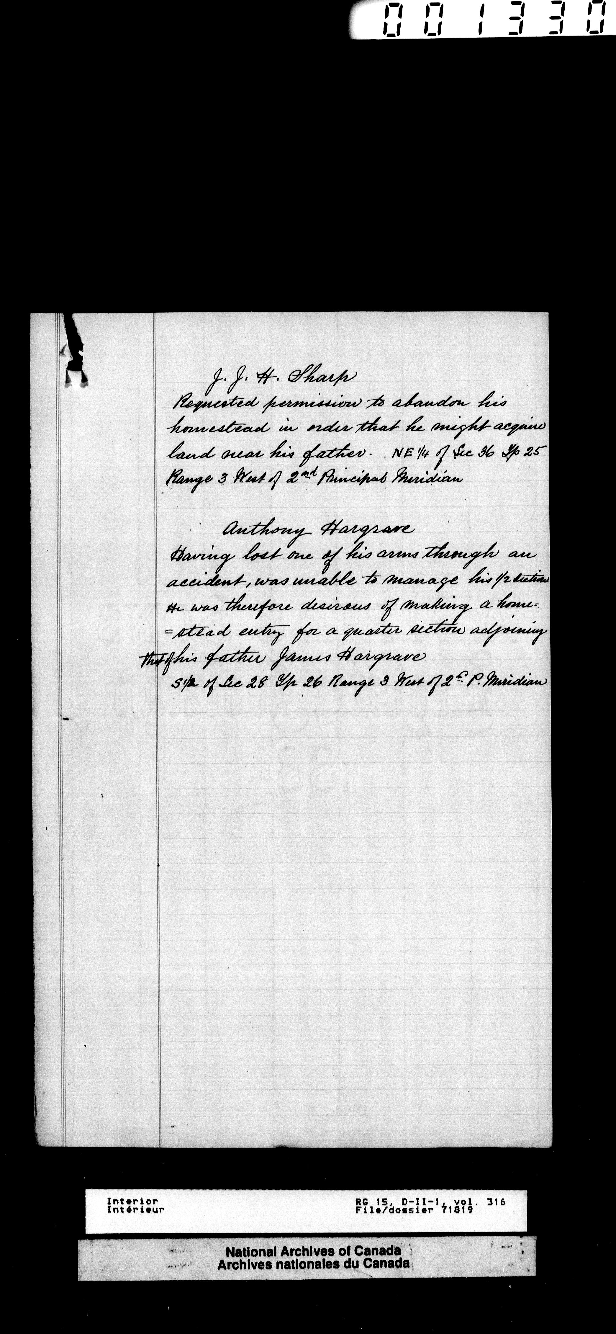Central registry subject files created by the Dominion Lands Branch - 13035