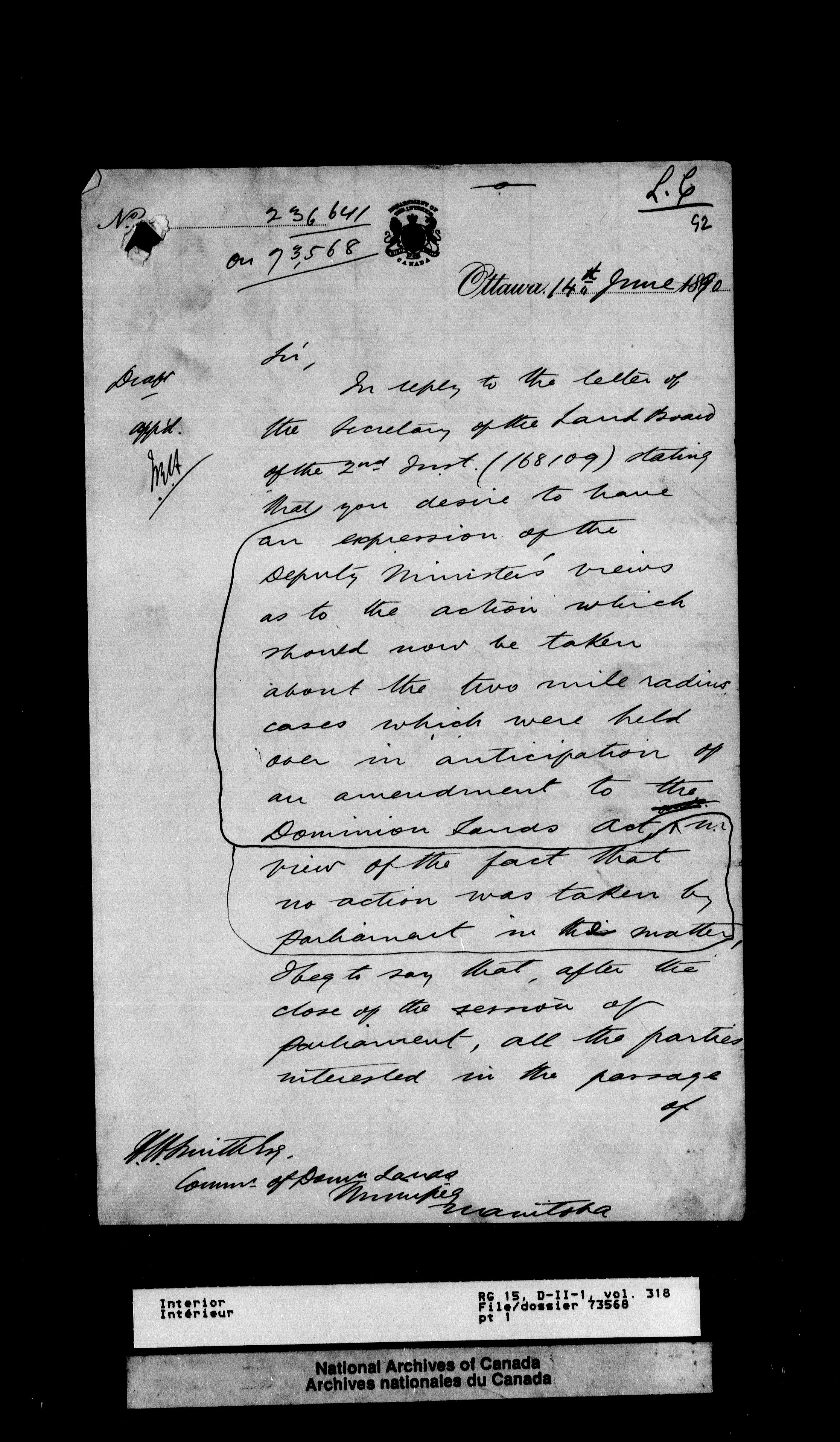 Central registry subject files created by the Dominion Lands Branch - 13037