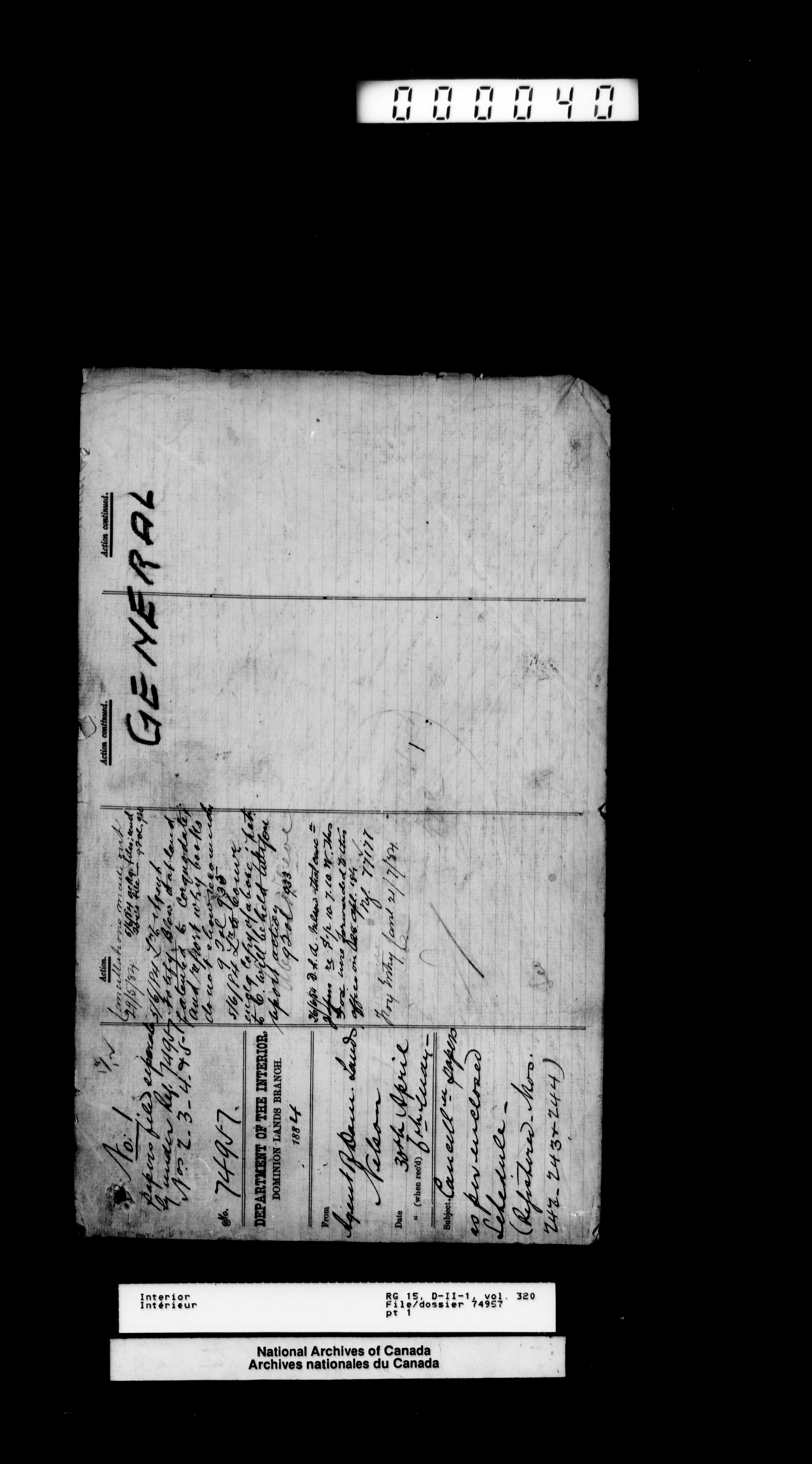 Central registry subject files created by the Dominion Lands Branch - 13040