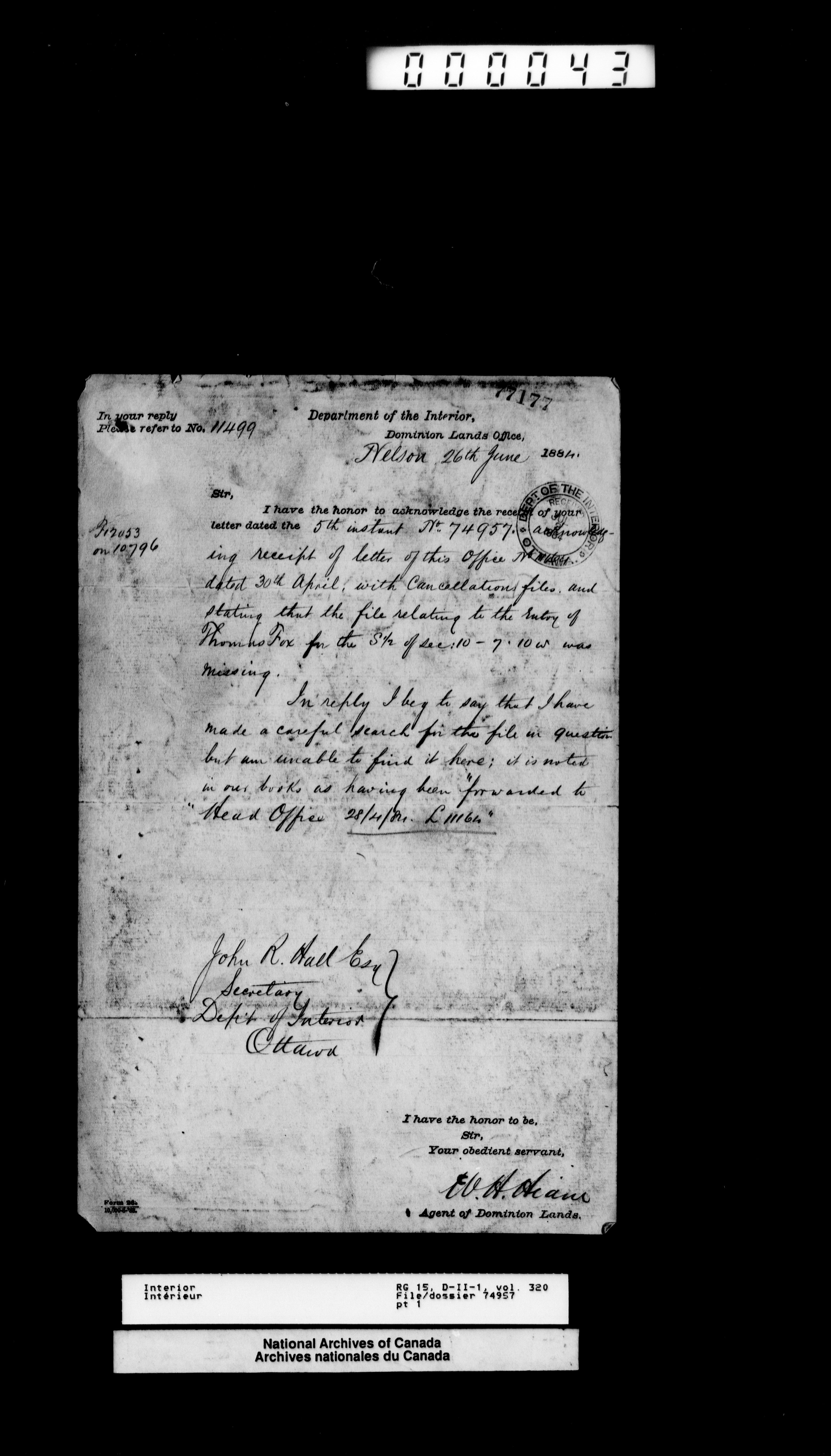 Central registry subject files created by the Dominion Lands Branch - 13040