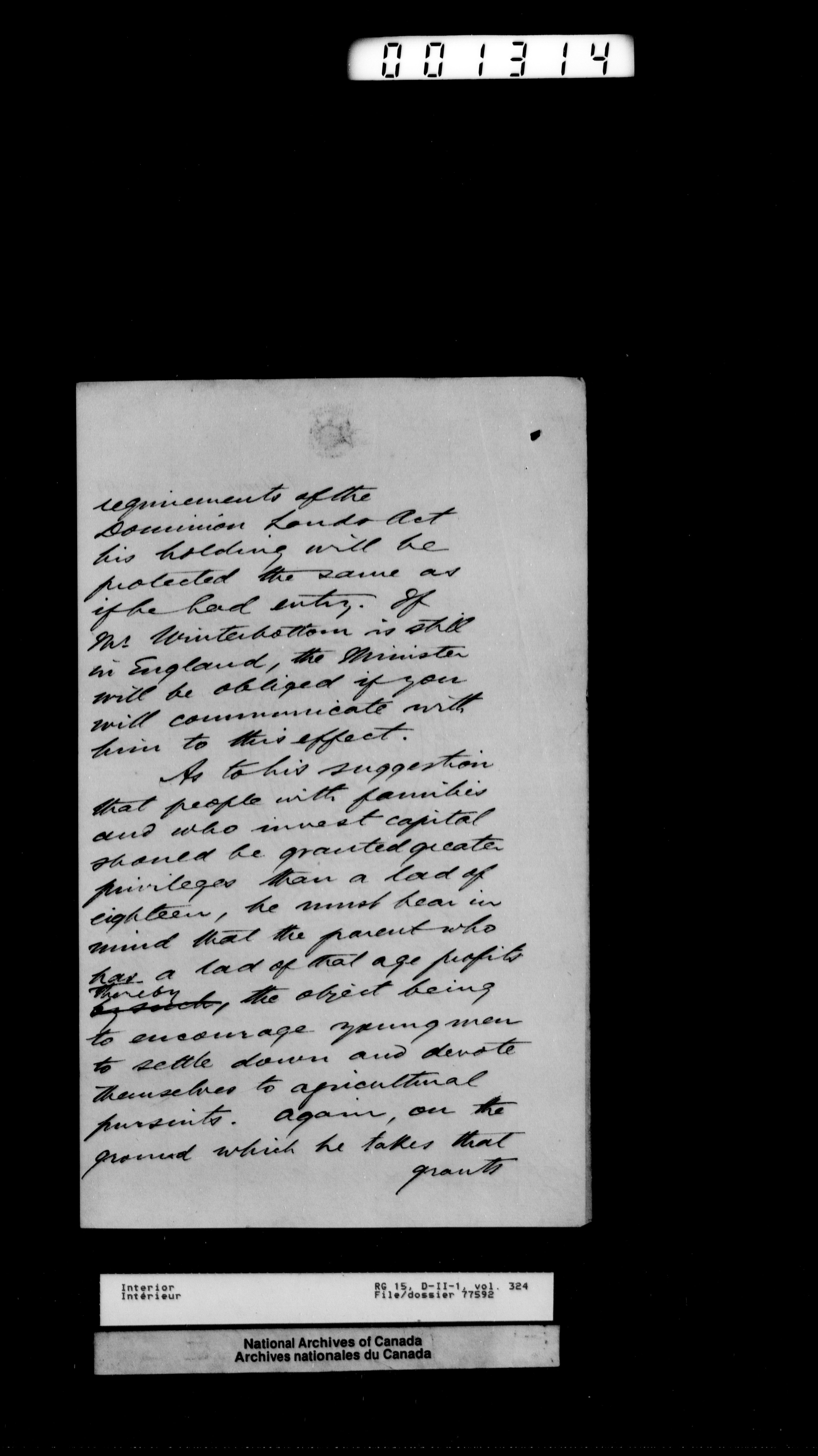 Central registry subject files created by the Dominion Lands Branch - 13043