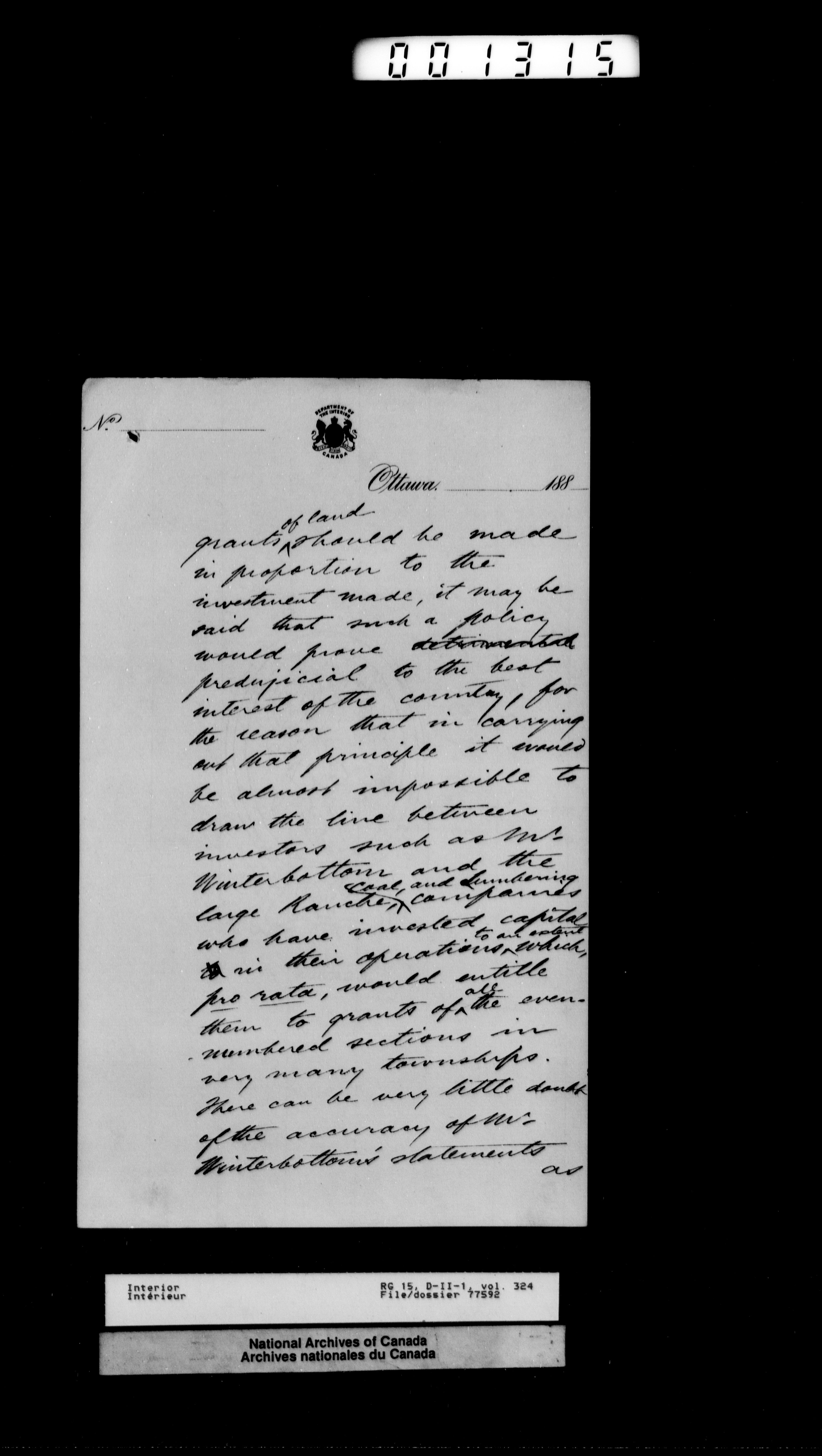 Central registry subject files created by the Dominion Lands Branch - 13043