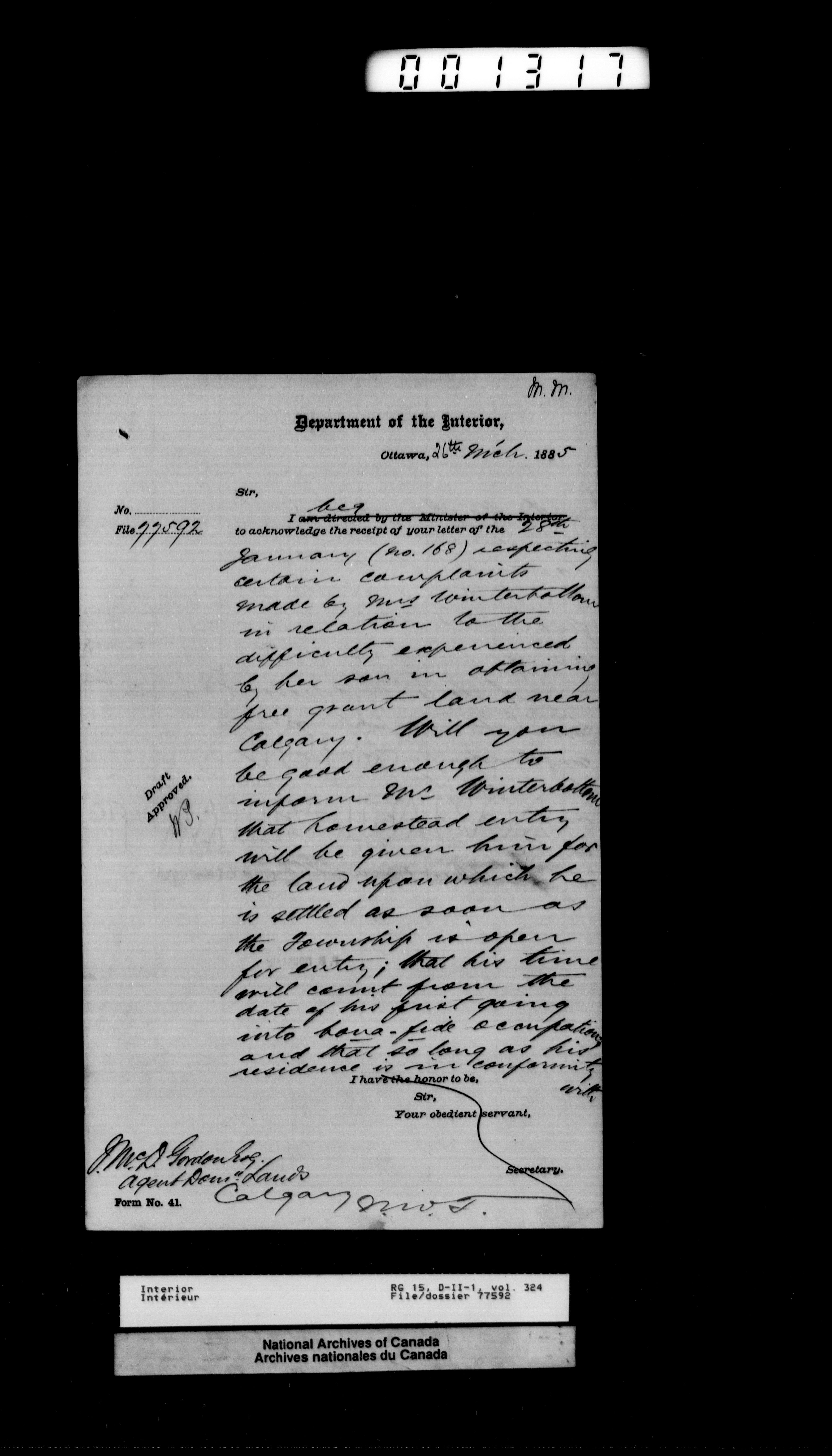 Central registry subject files created by the Dominion Lands Branch - 13043