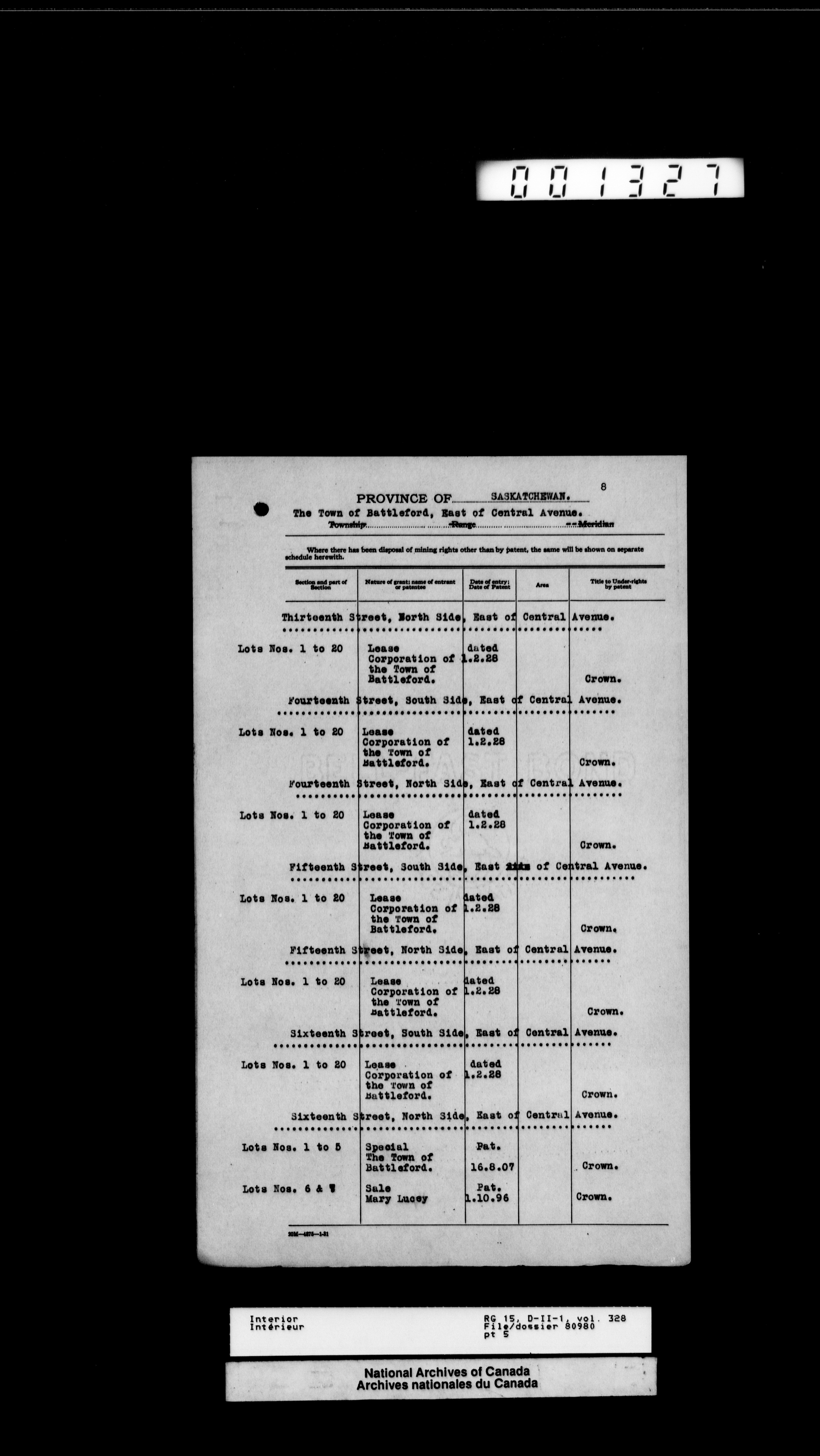 Central registry subject files created by the Dominion Lands Branch - 13047