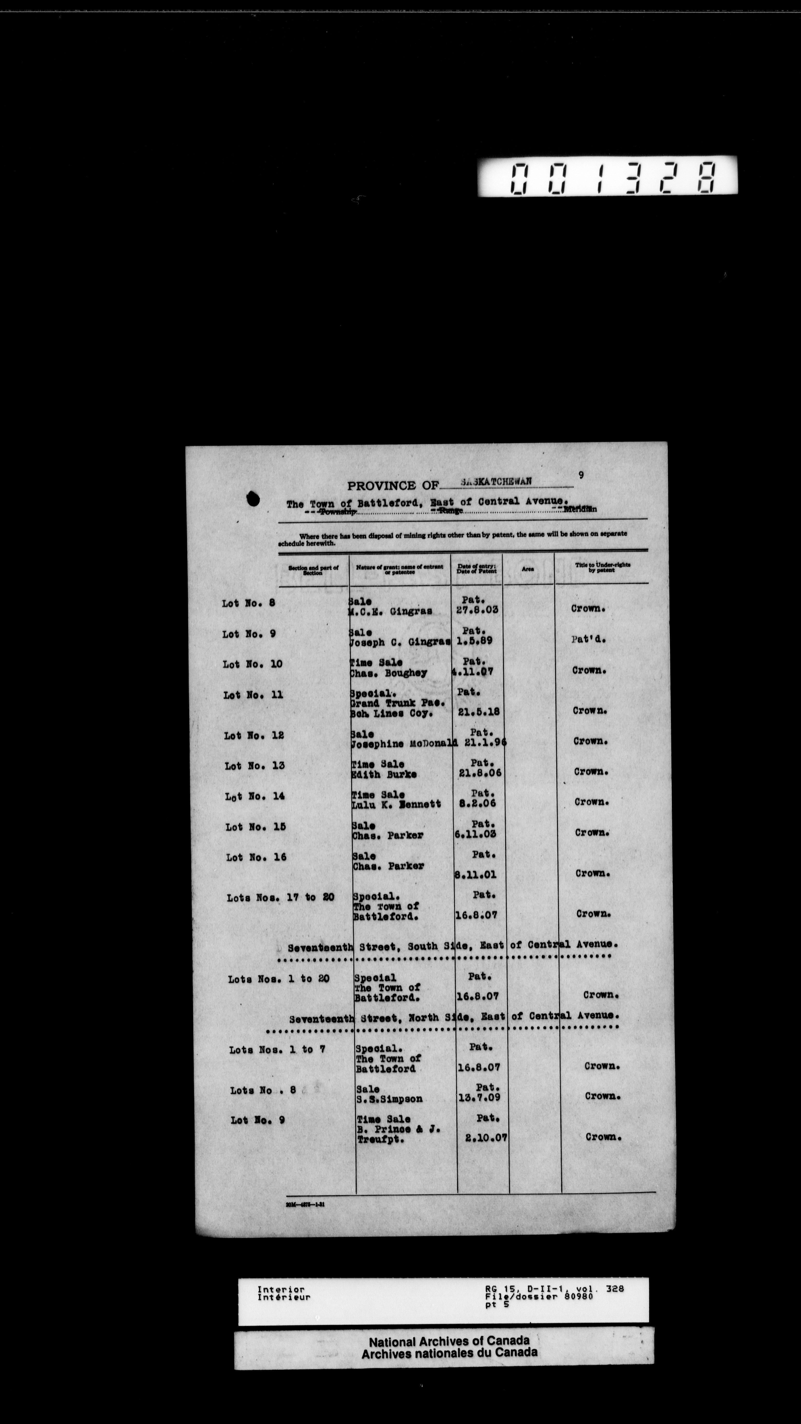 Central registry subject files created by the Dominion Lands Branch - 13047