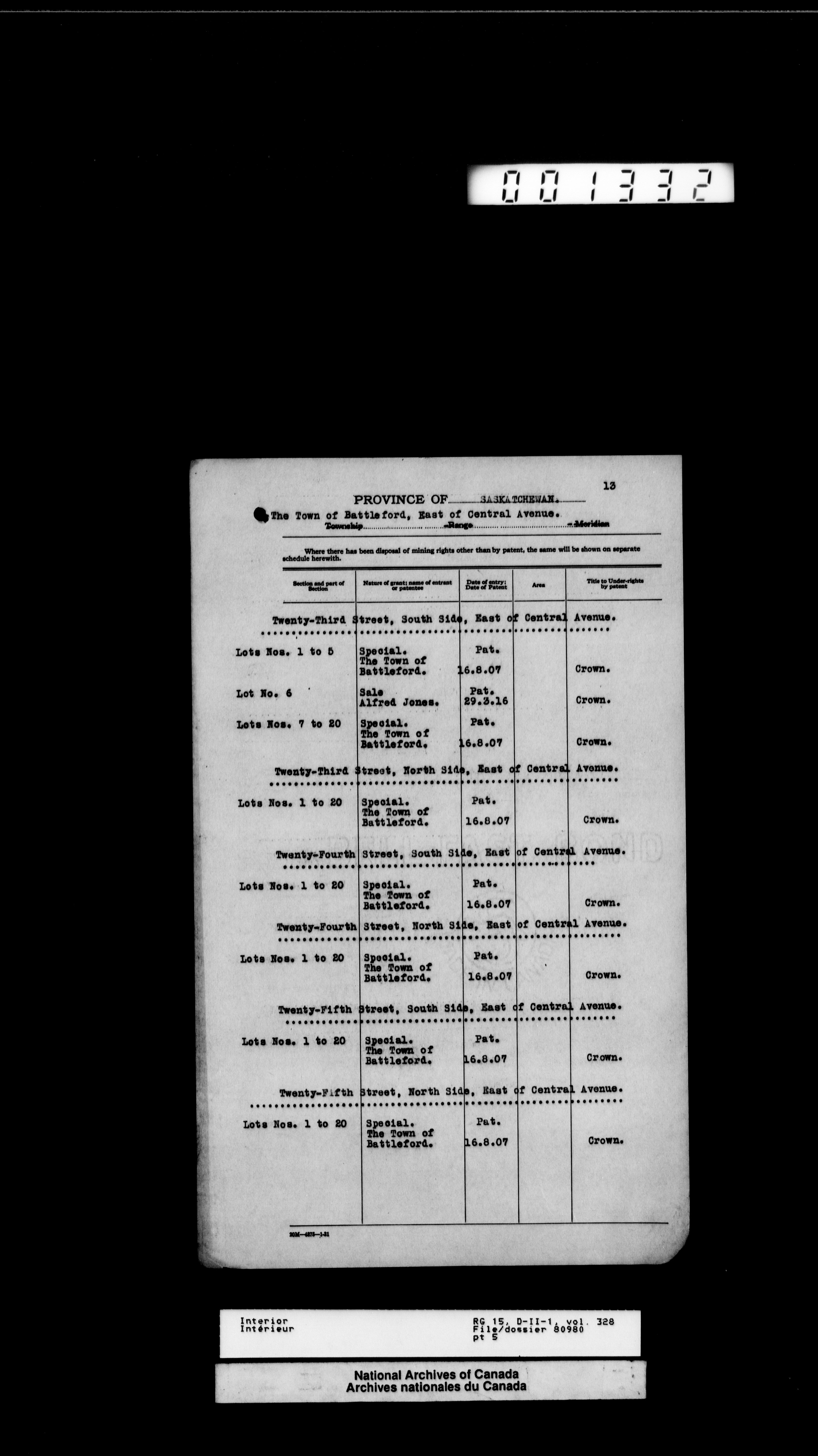 Central registry subject files created by the Dominion Lands Branch - 13047