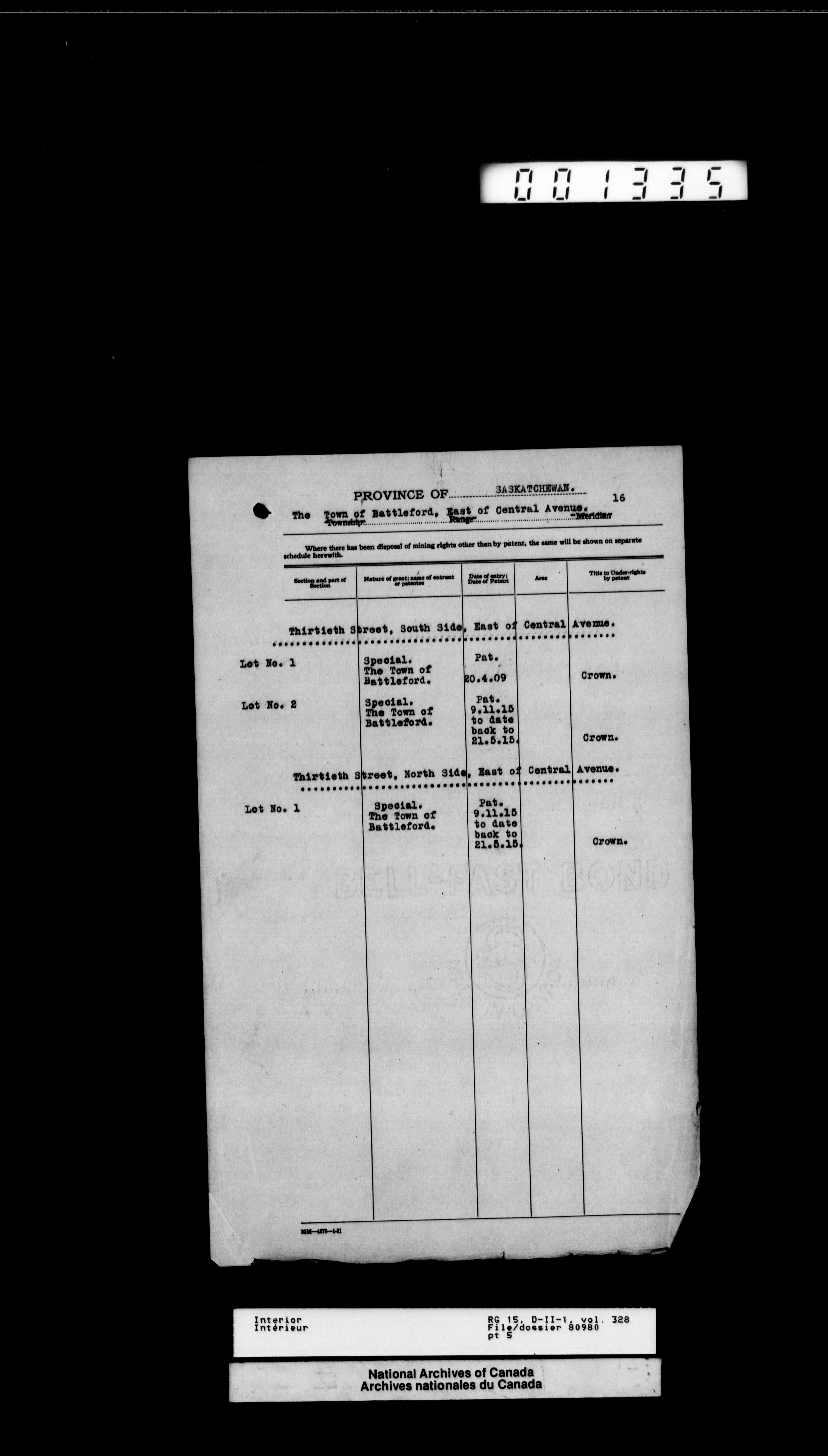 Central registry subject files created by the Dominion Lands Branch - 13047