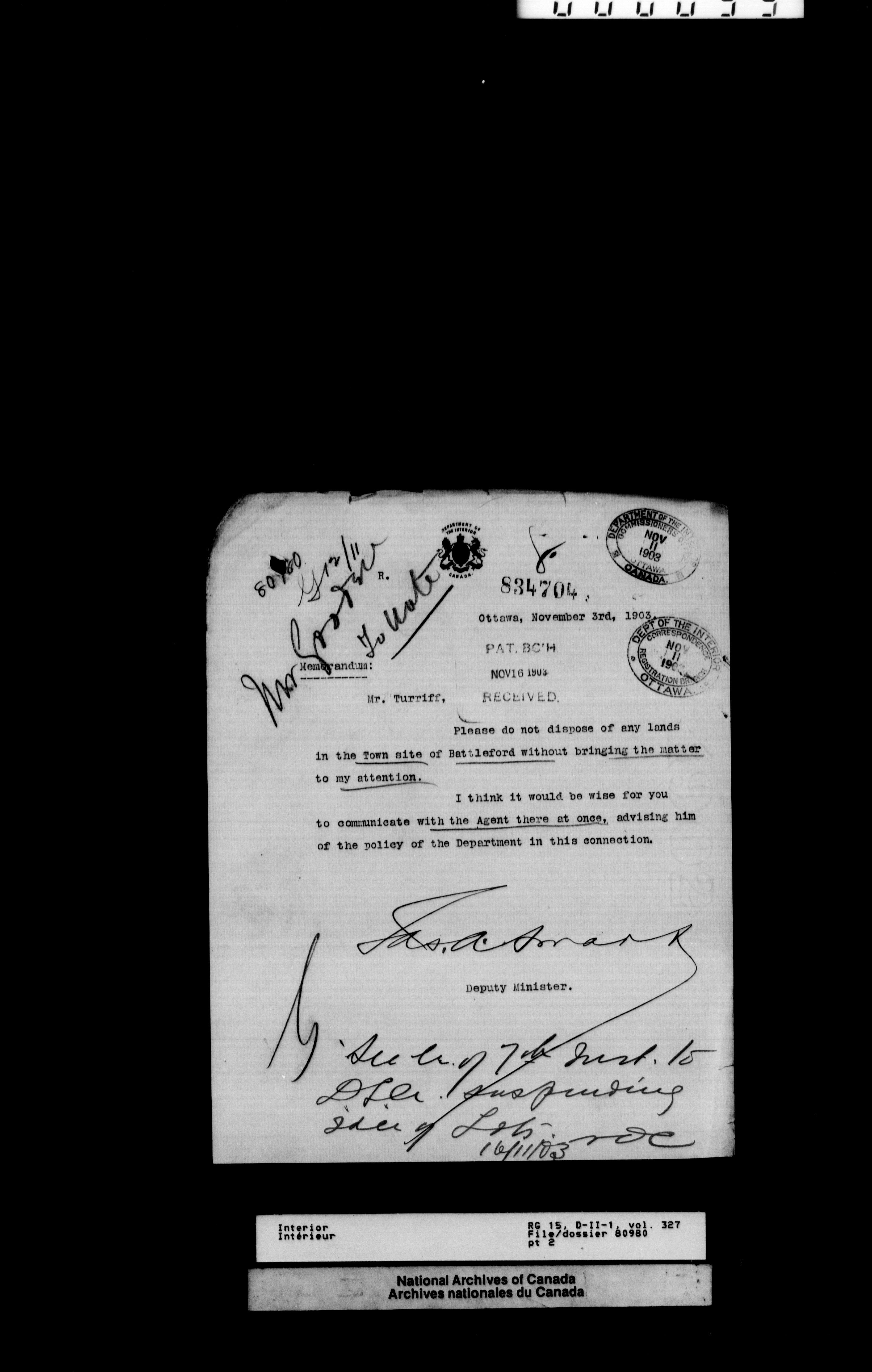 Central registry subject files created by the Dominion Lands Branch - 13047