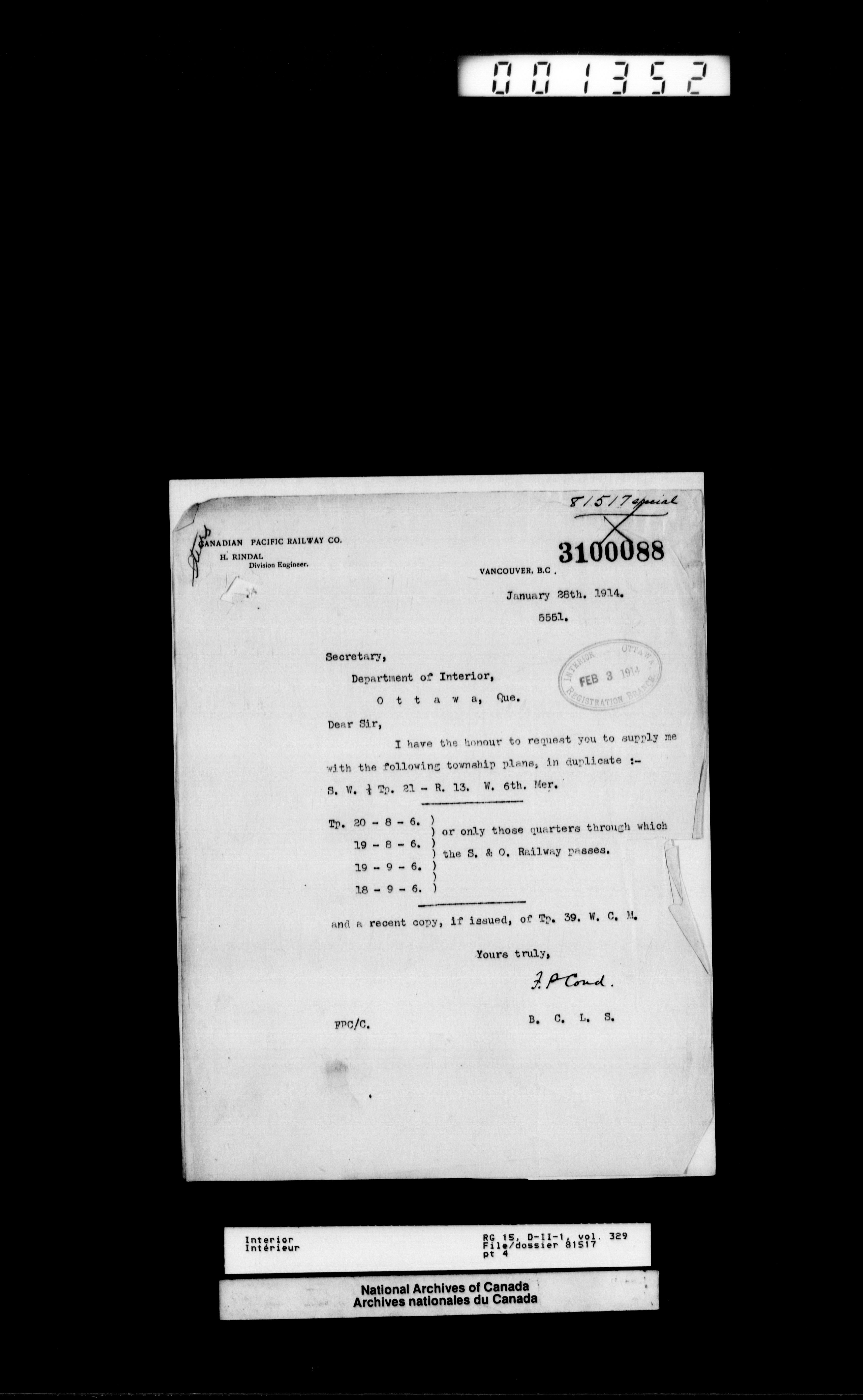 Central registry subject files created by the Dominion Lands Branch - 13049