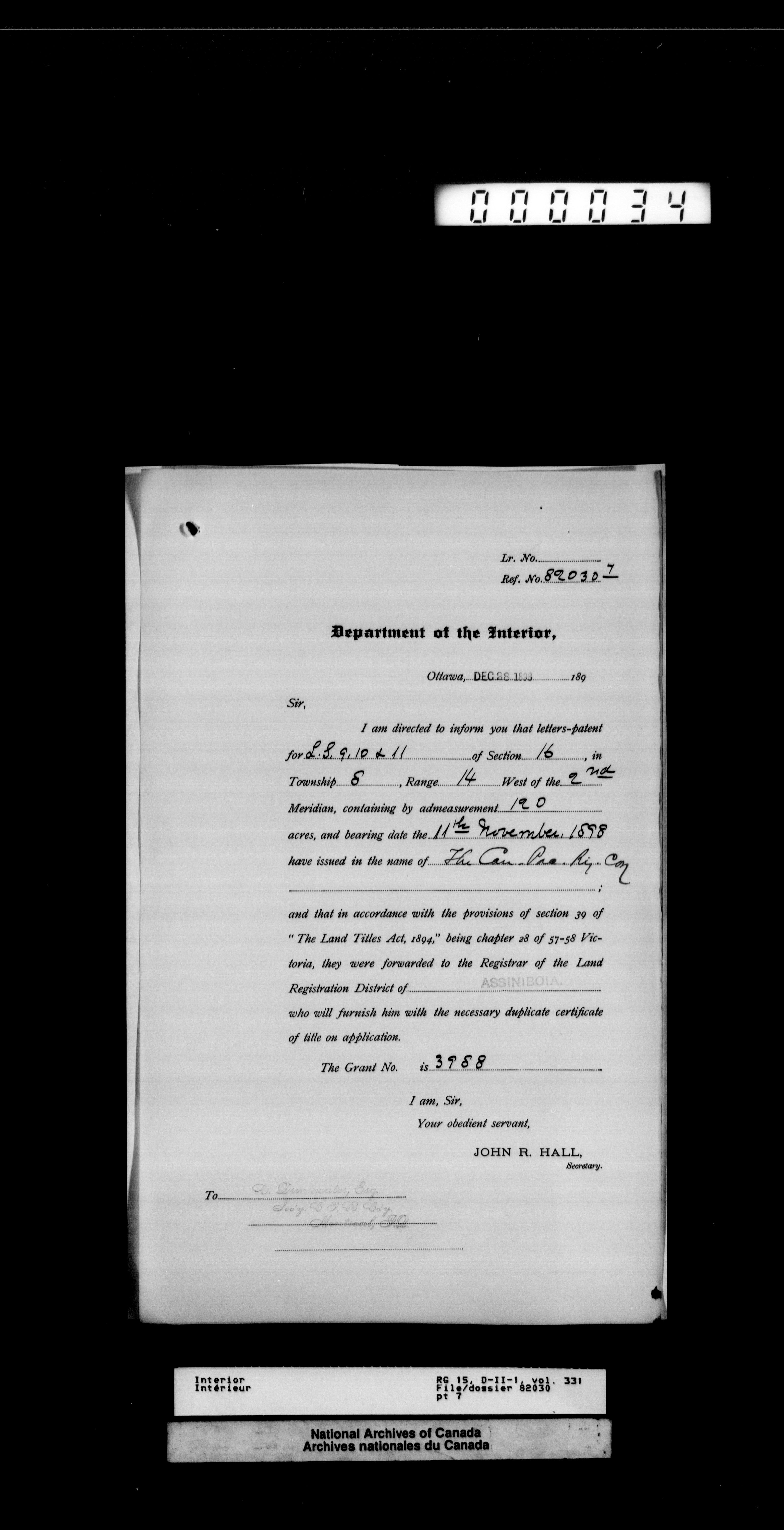 Central registry subject files created by the Dominion Lands Branch - 13052
