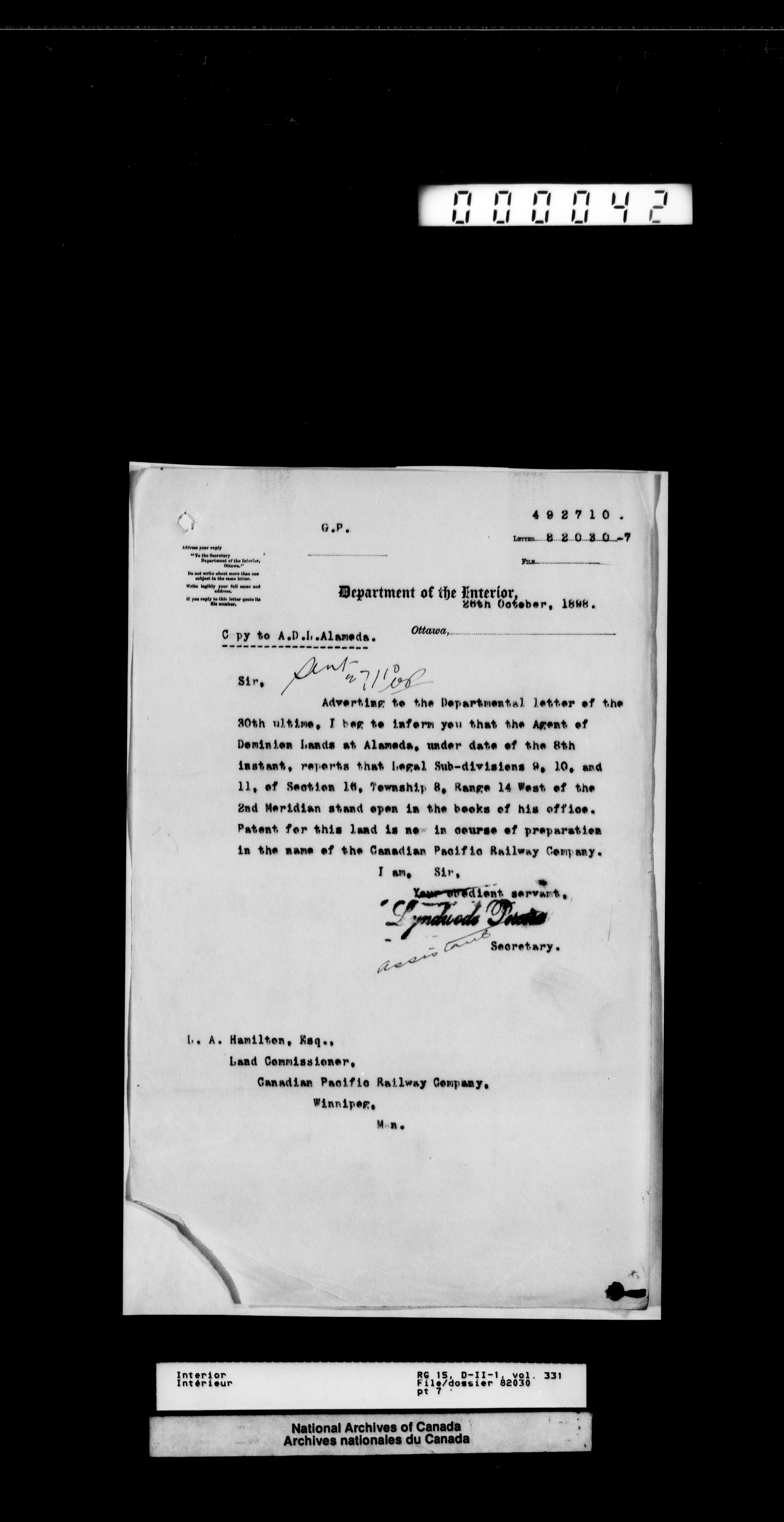 Central registry subject files created by the Dominion Lands Branch - 13052