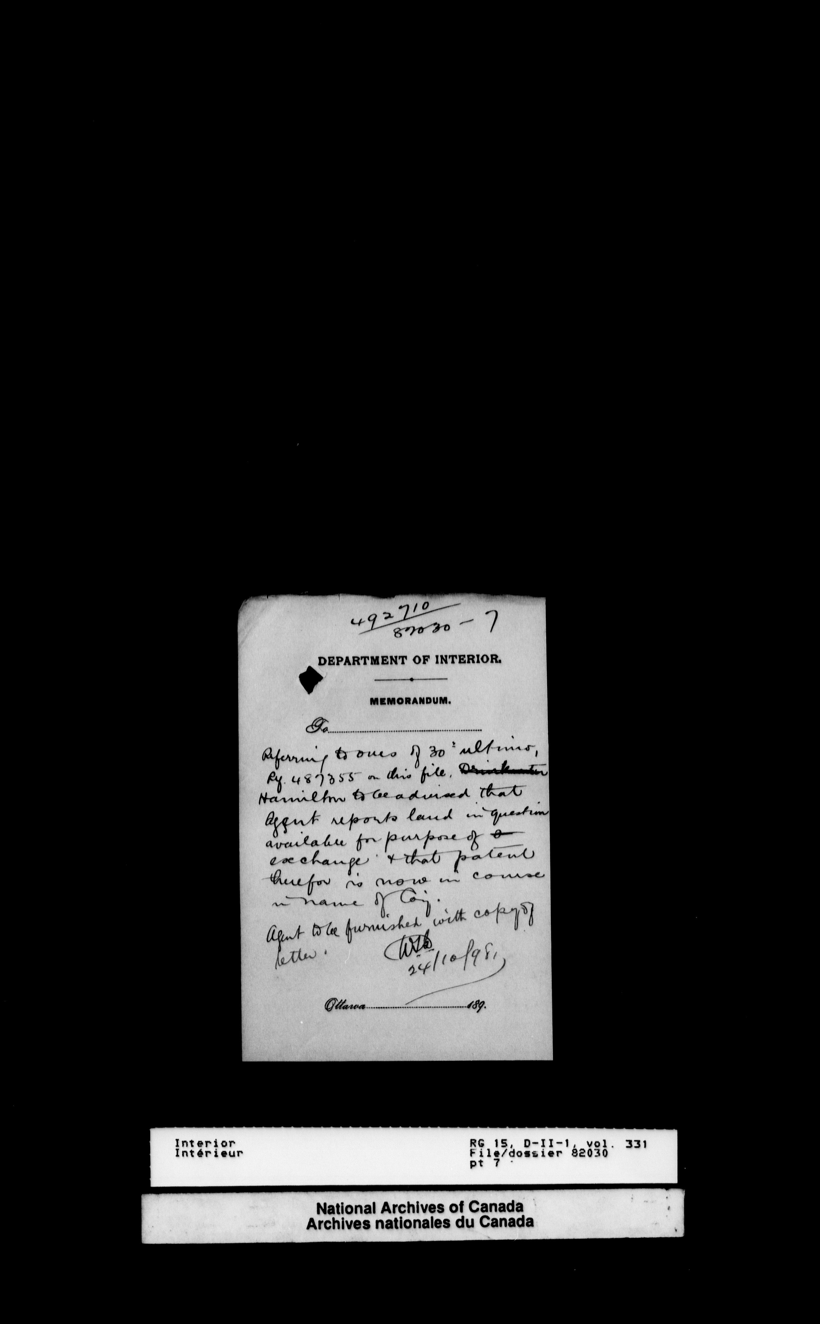 Central registry subject files created by the Dominion Lands Branch - 13052