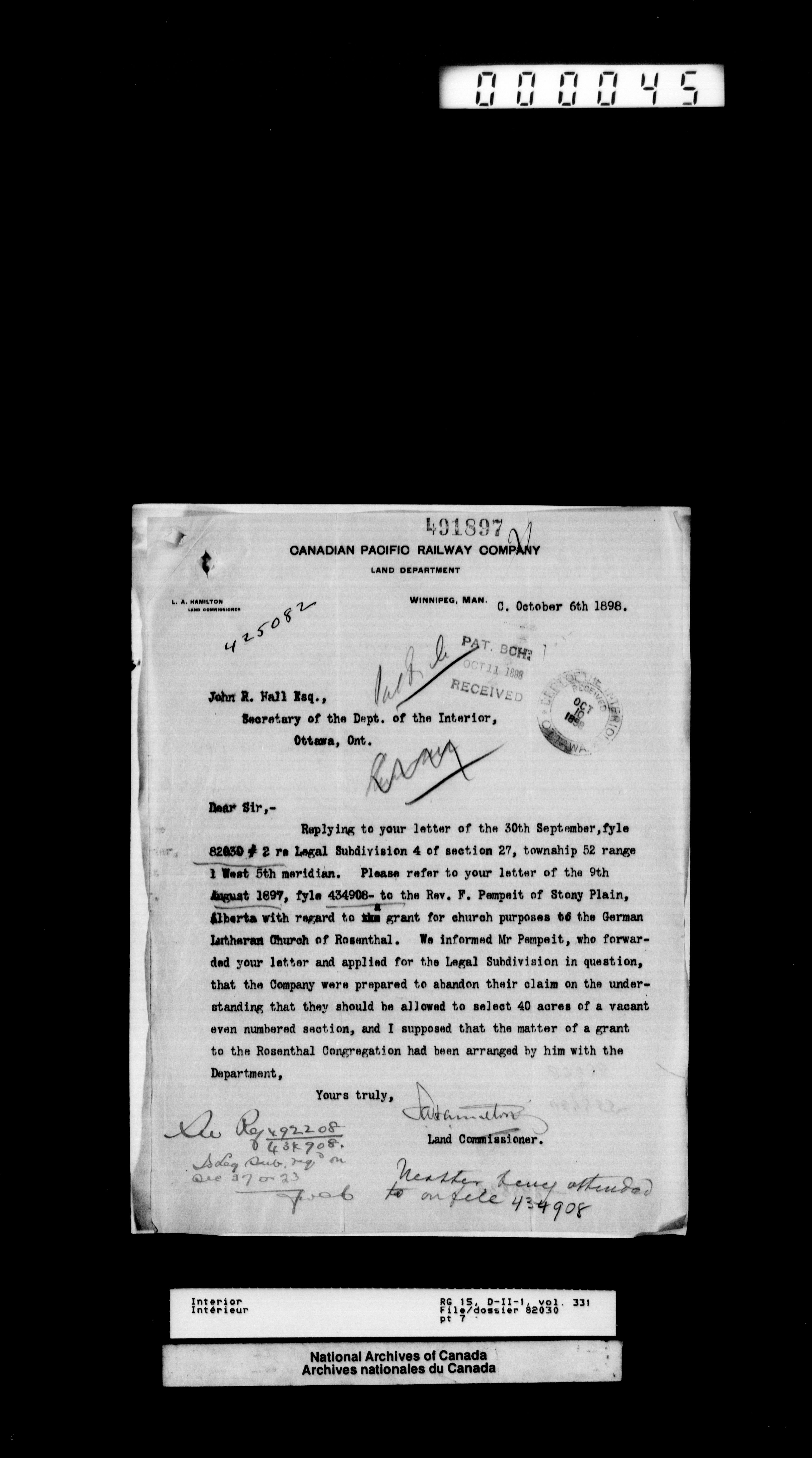 Central registry subject files created by the Dominion Lands Branch - 13052