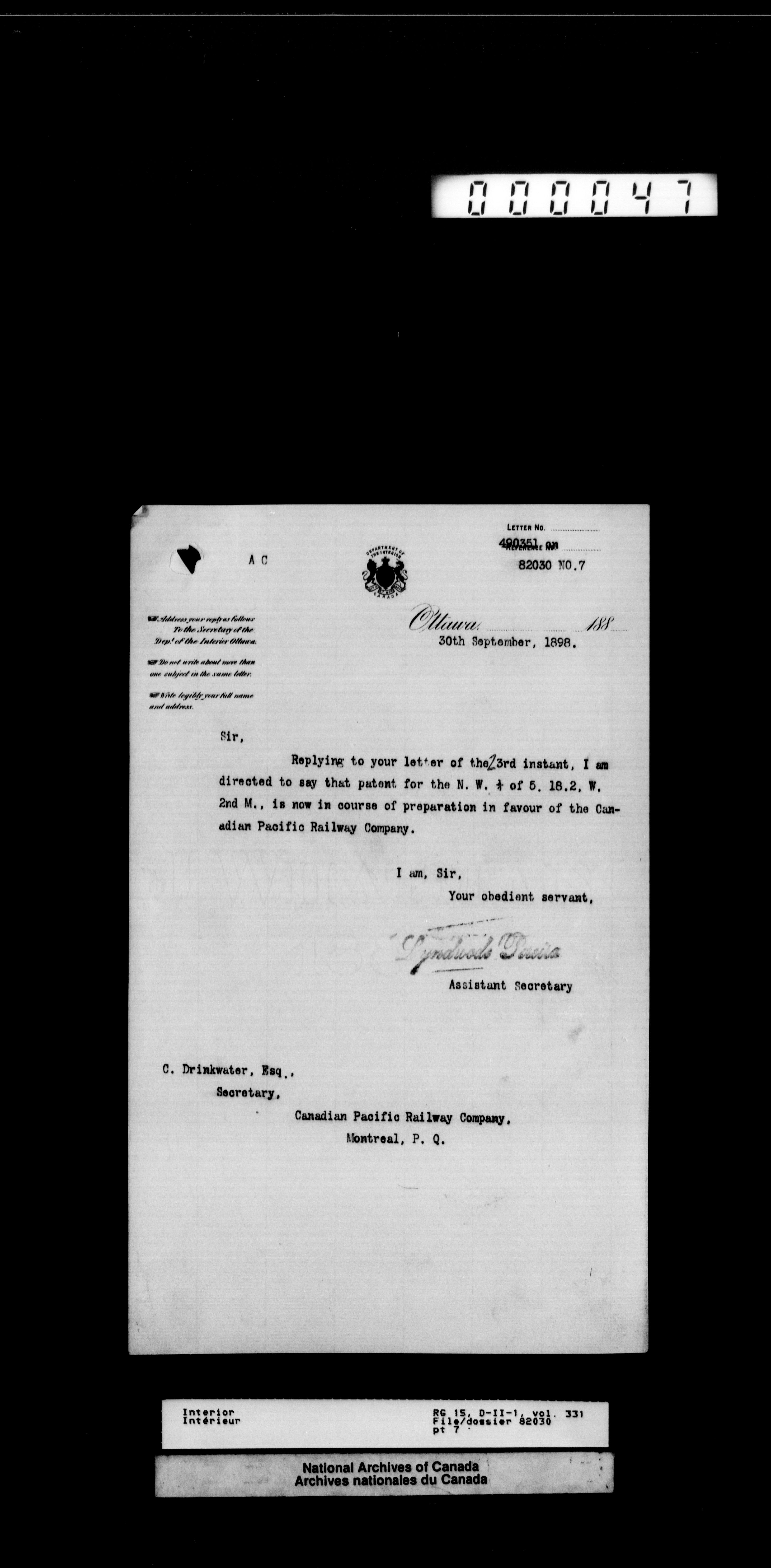 Central registry subject files created by the Dominion Lands Branch - 13052