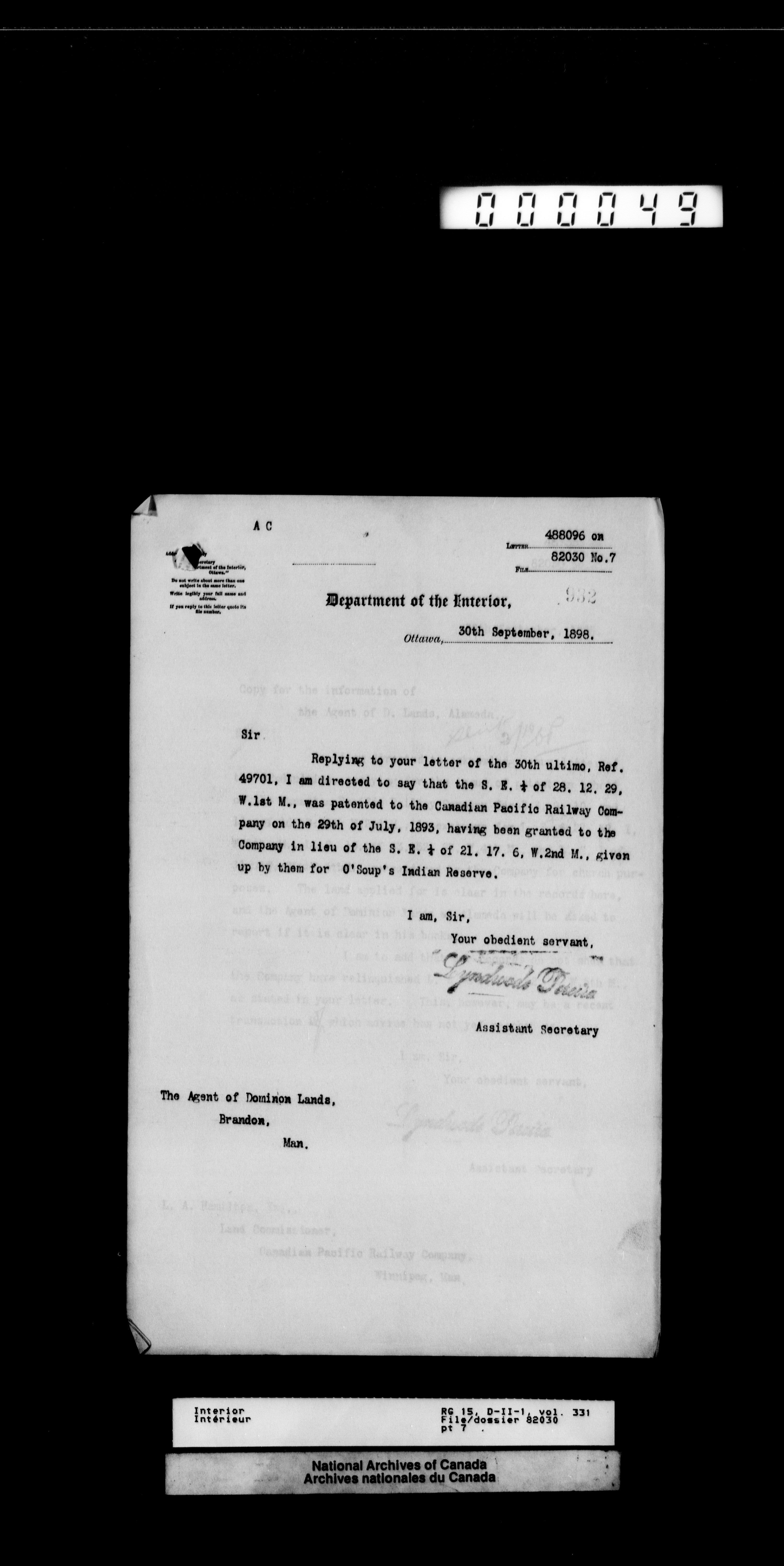 Central registry subject files created by the Dominion Lands Branch - 13052
