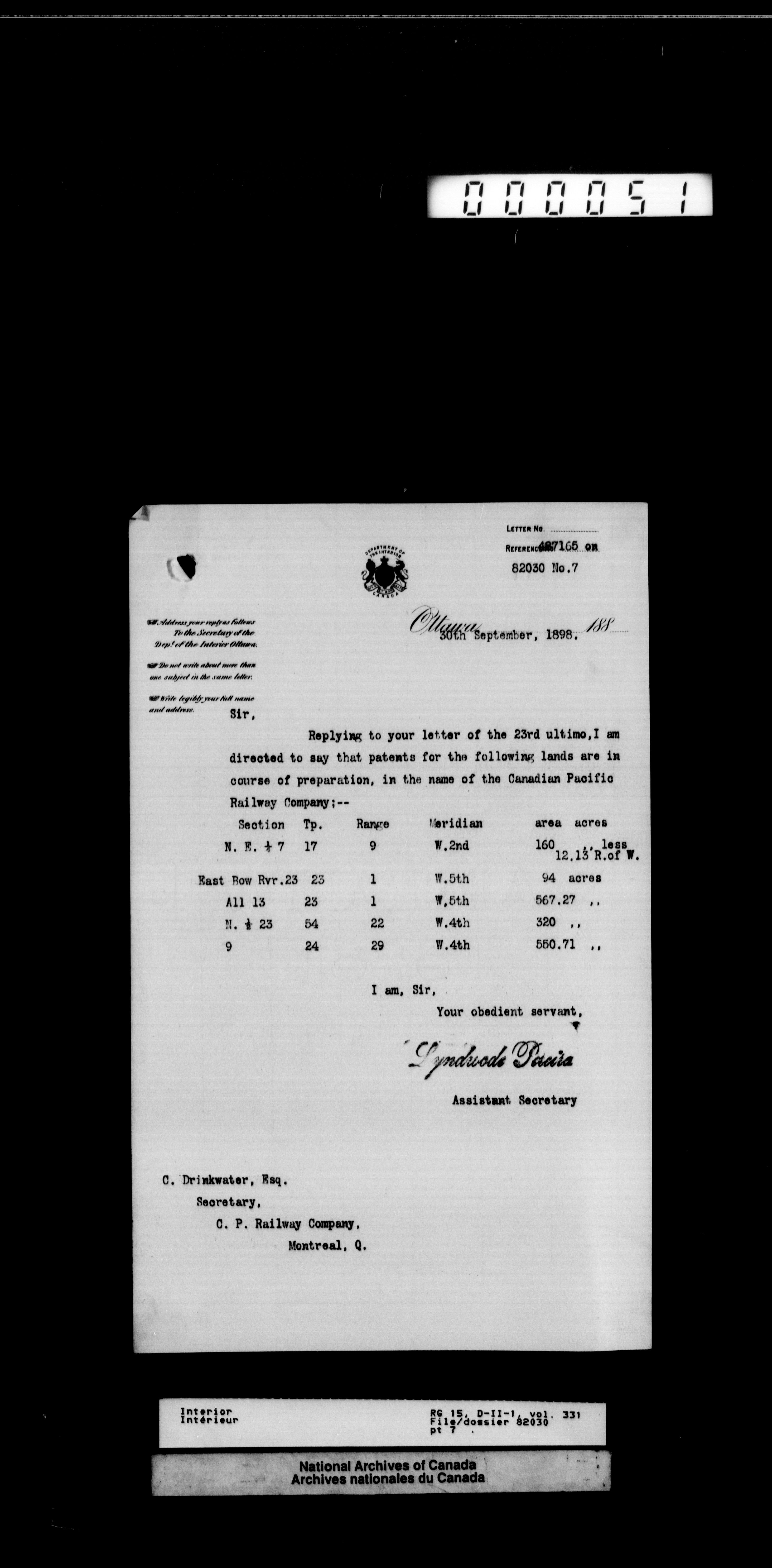 Central registry subject files created by the Dominion Lands Branch - 13052