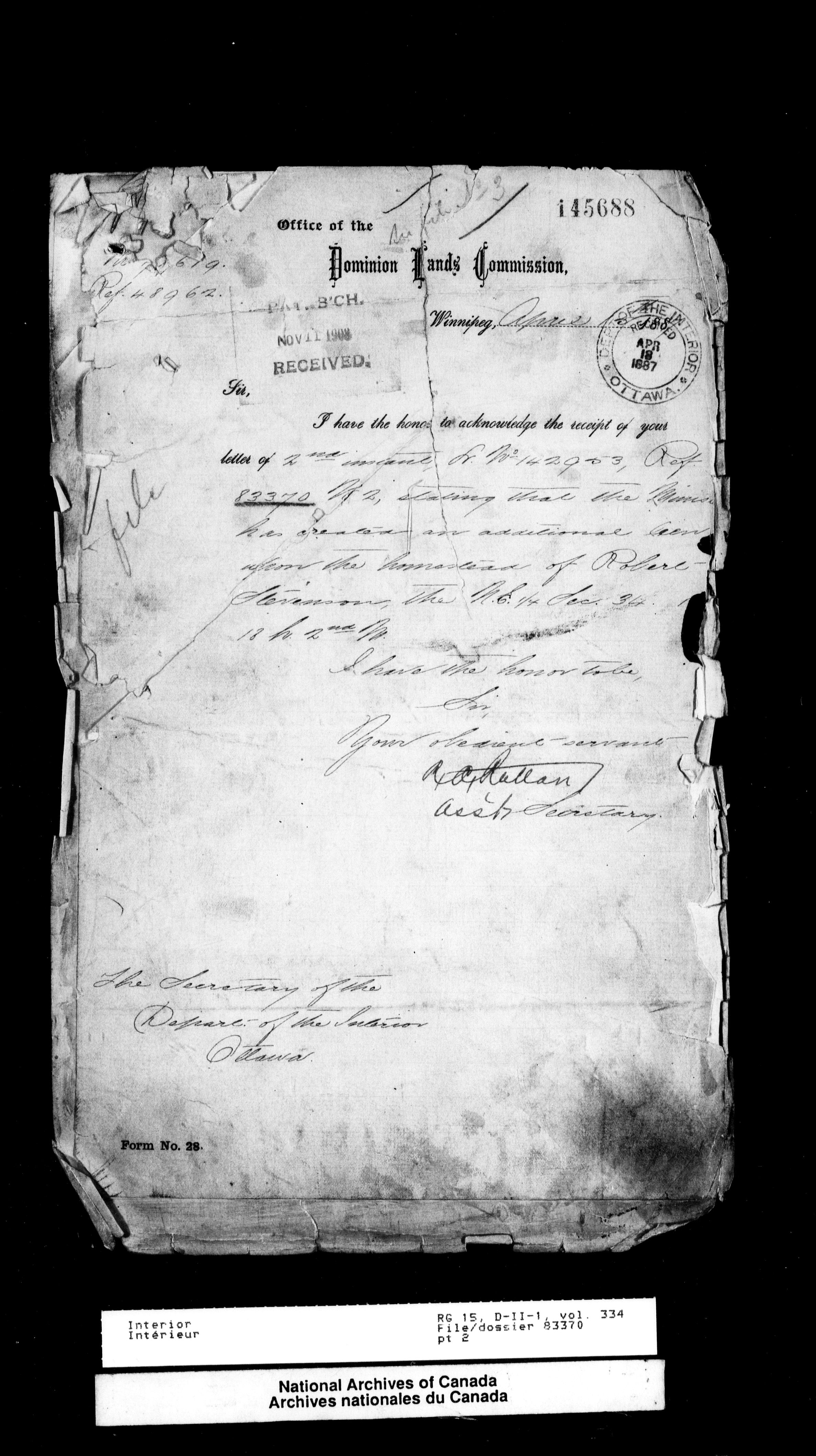 Central registry subject files created by the Dominion Lands Branch - 13055