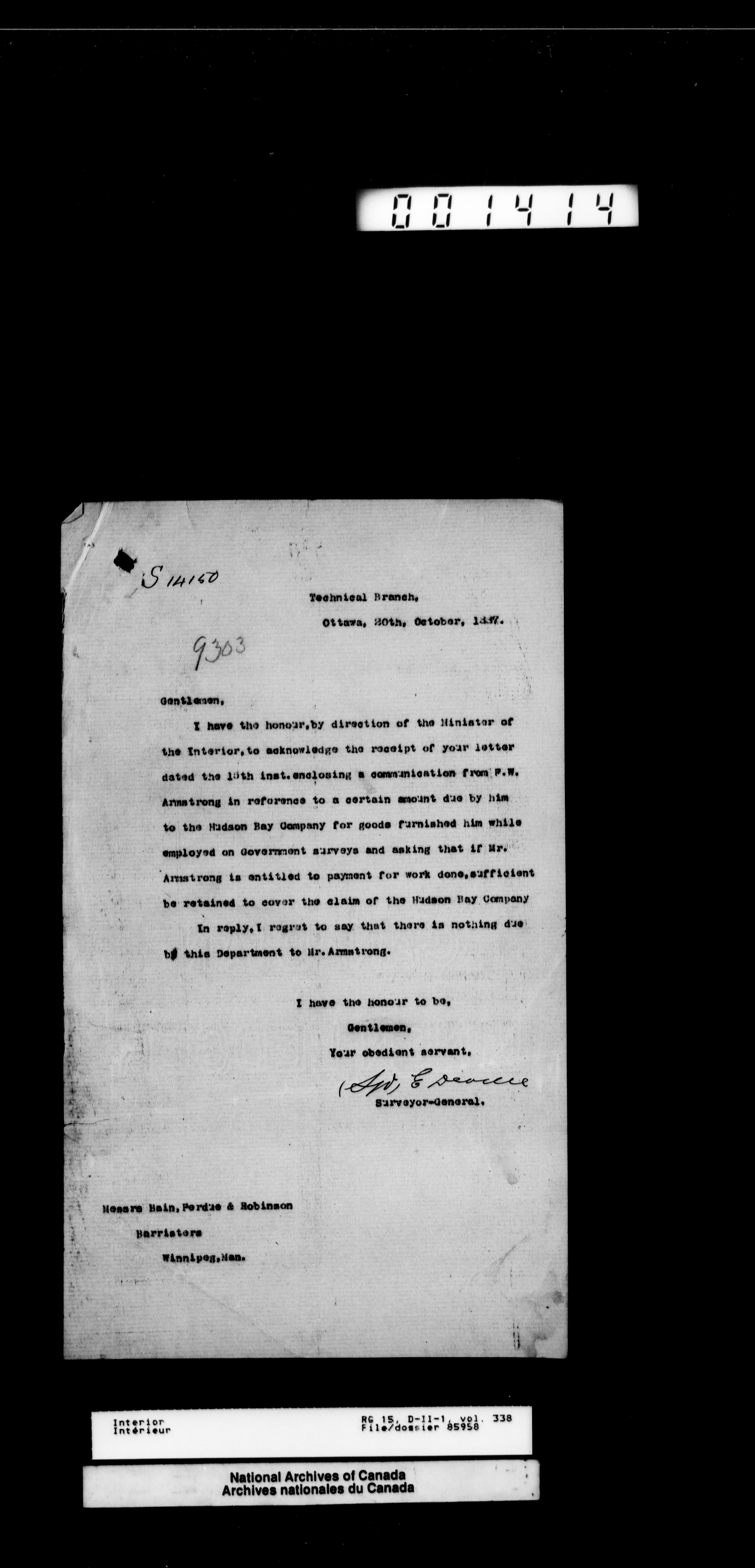 Central registry subject files created by the Dominion Lands Branch - 13058