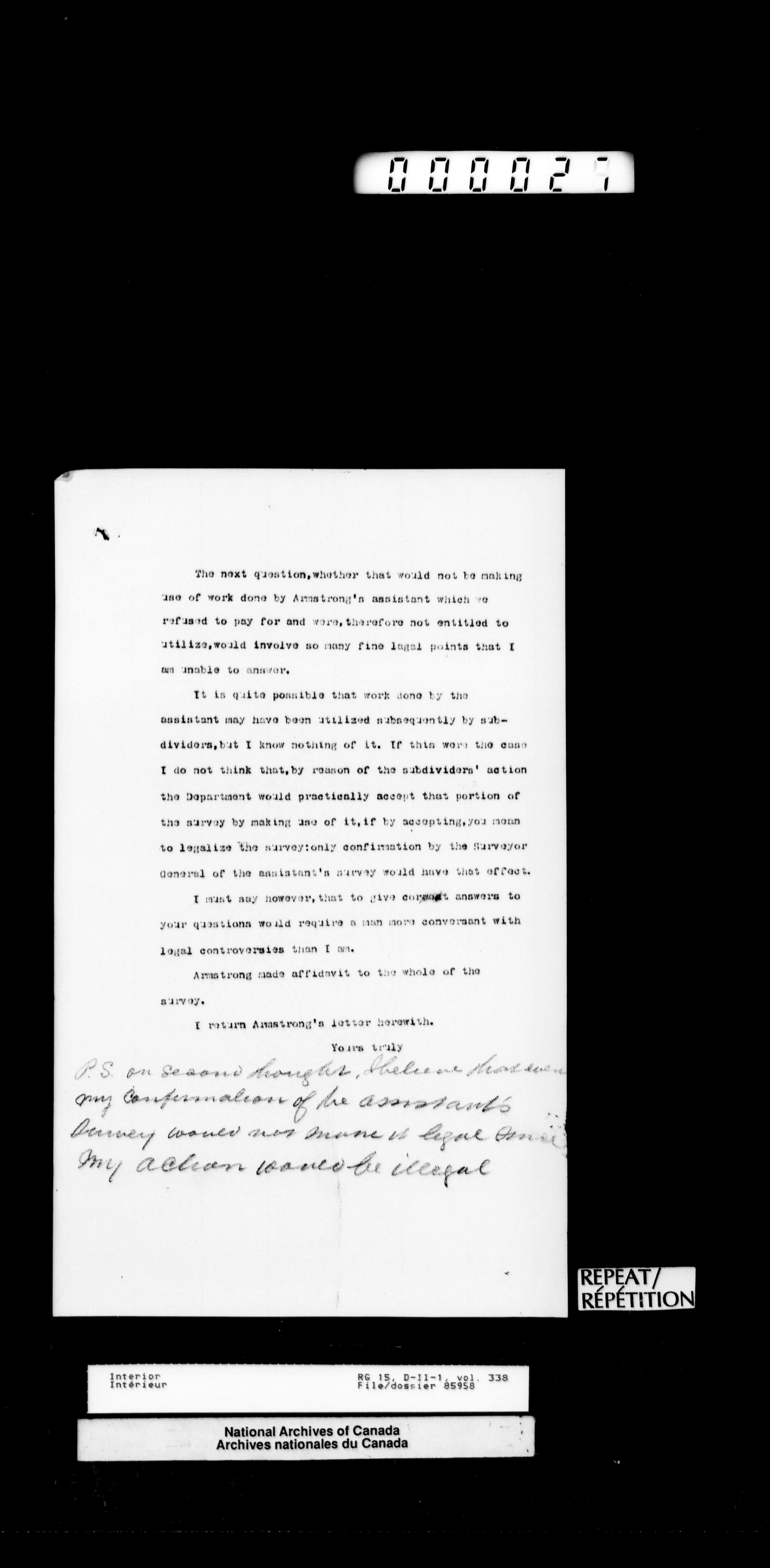 Central registry subject files created by the Dominion Lands Branch - 13059