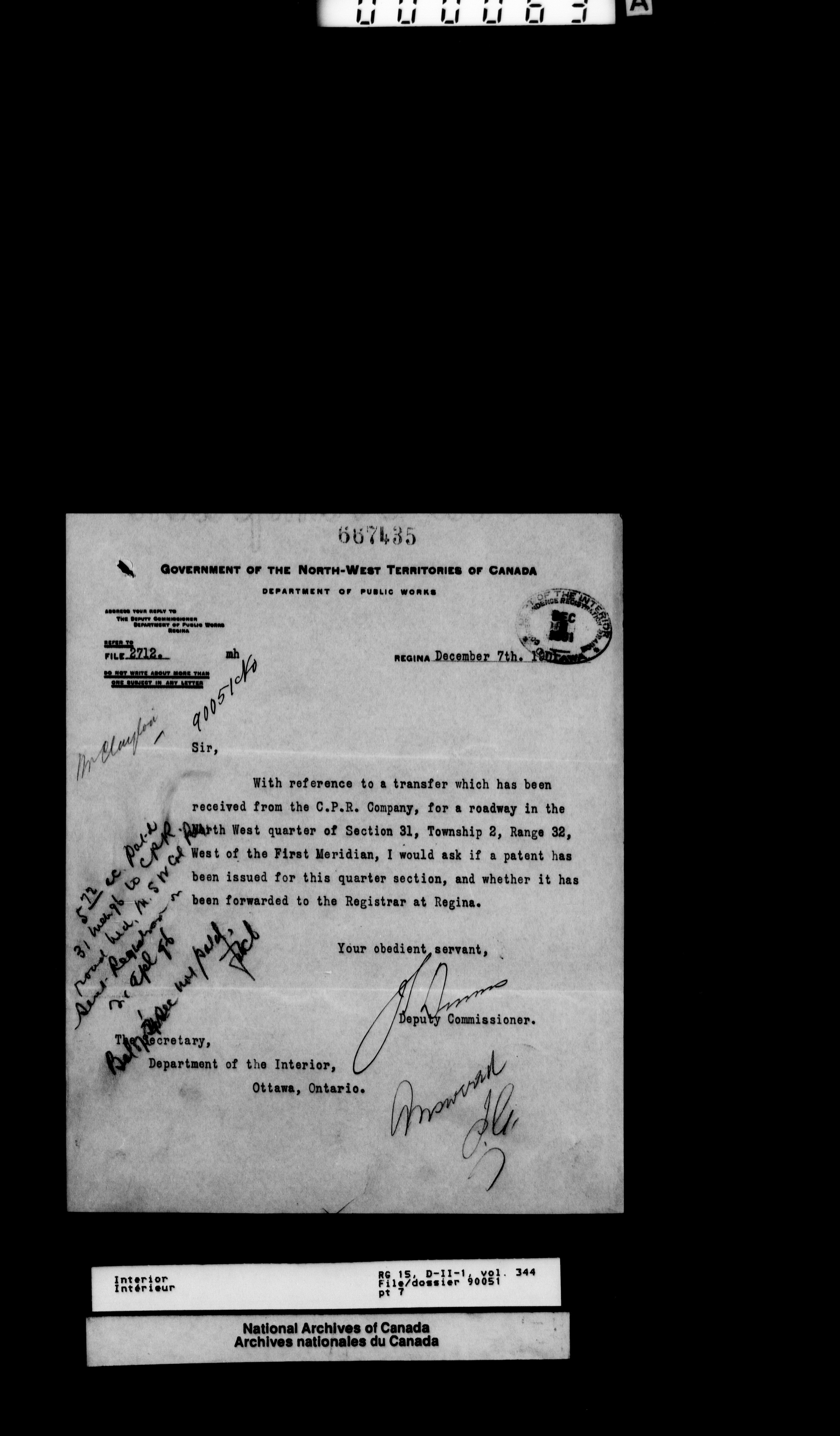 Central registry subject files created by the Dominion Lands Branch - 13065