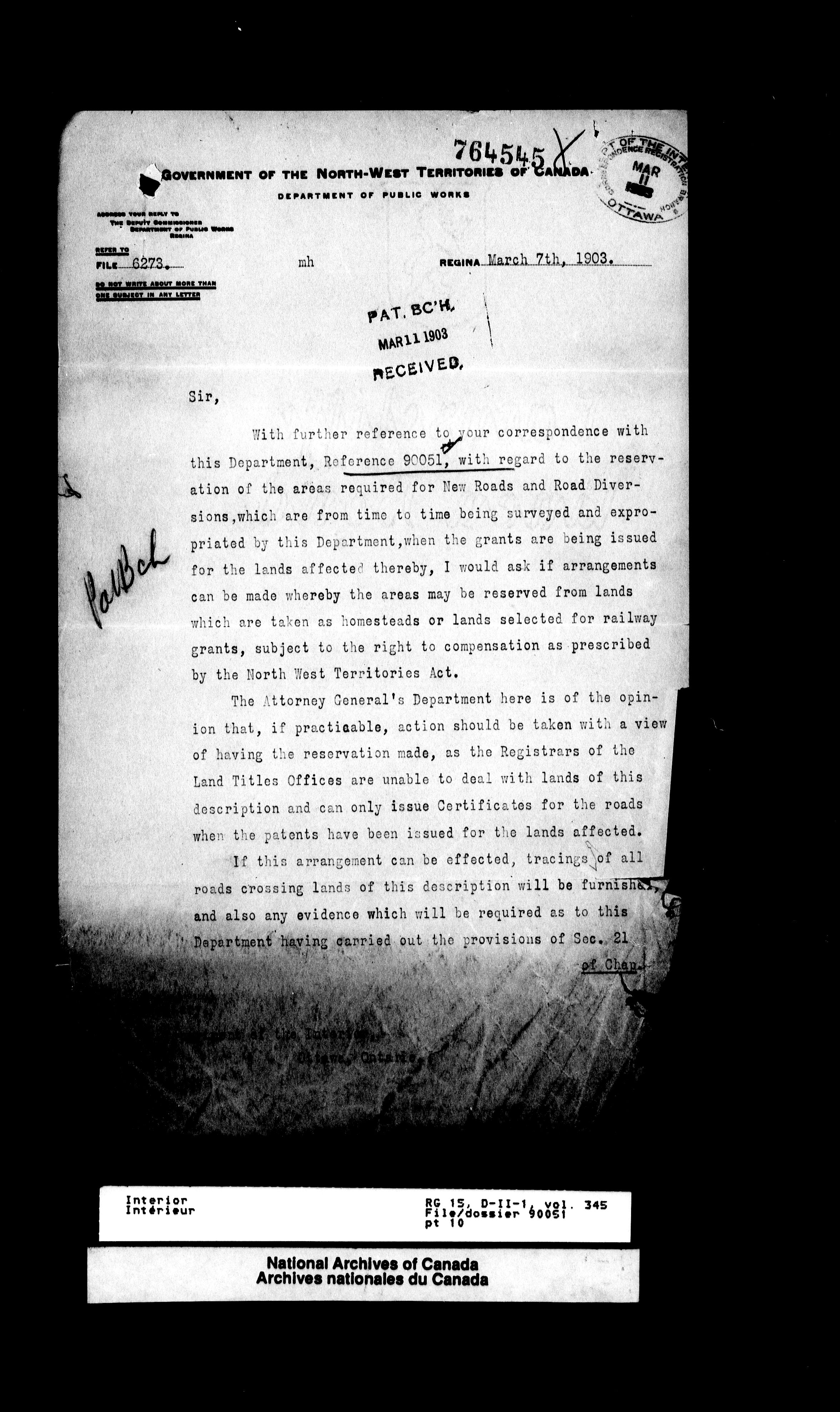 Central registry subject files created by the Dominion Lands Branch - 13066