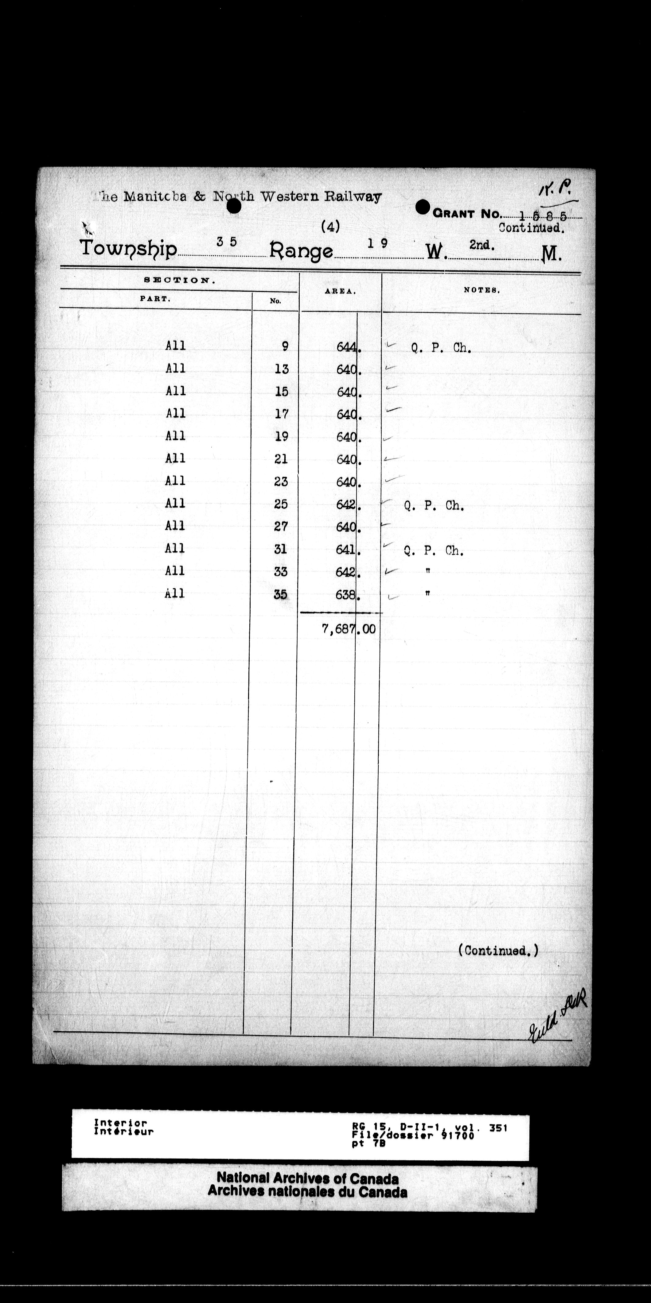 Manitoba and North-Western Railway Company, Land Patent file - 13074