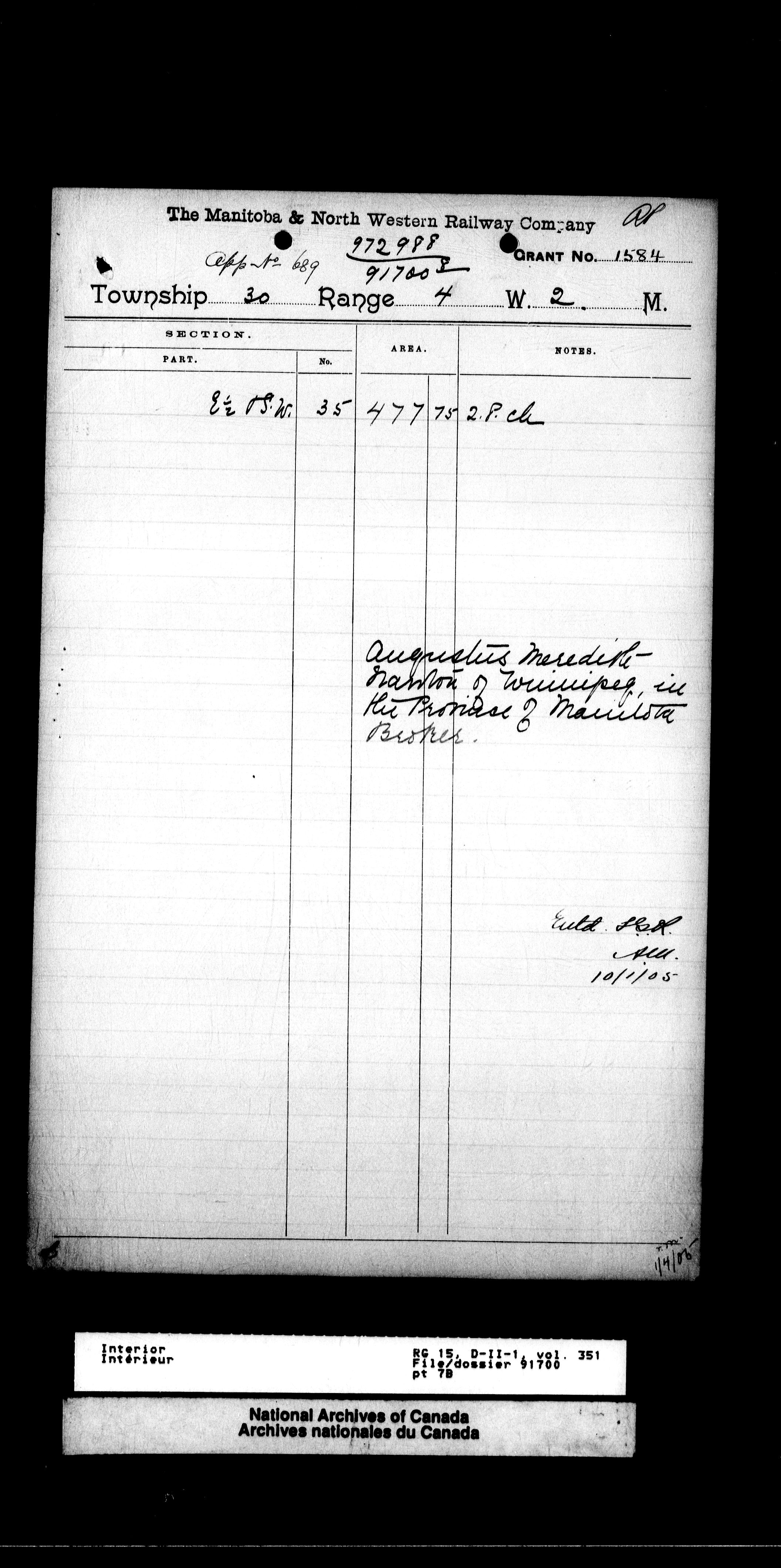 Manitoba and North-Western Railway Company, Land Patent file - 13074