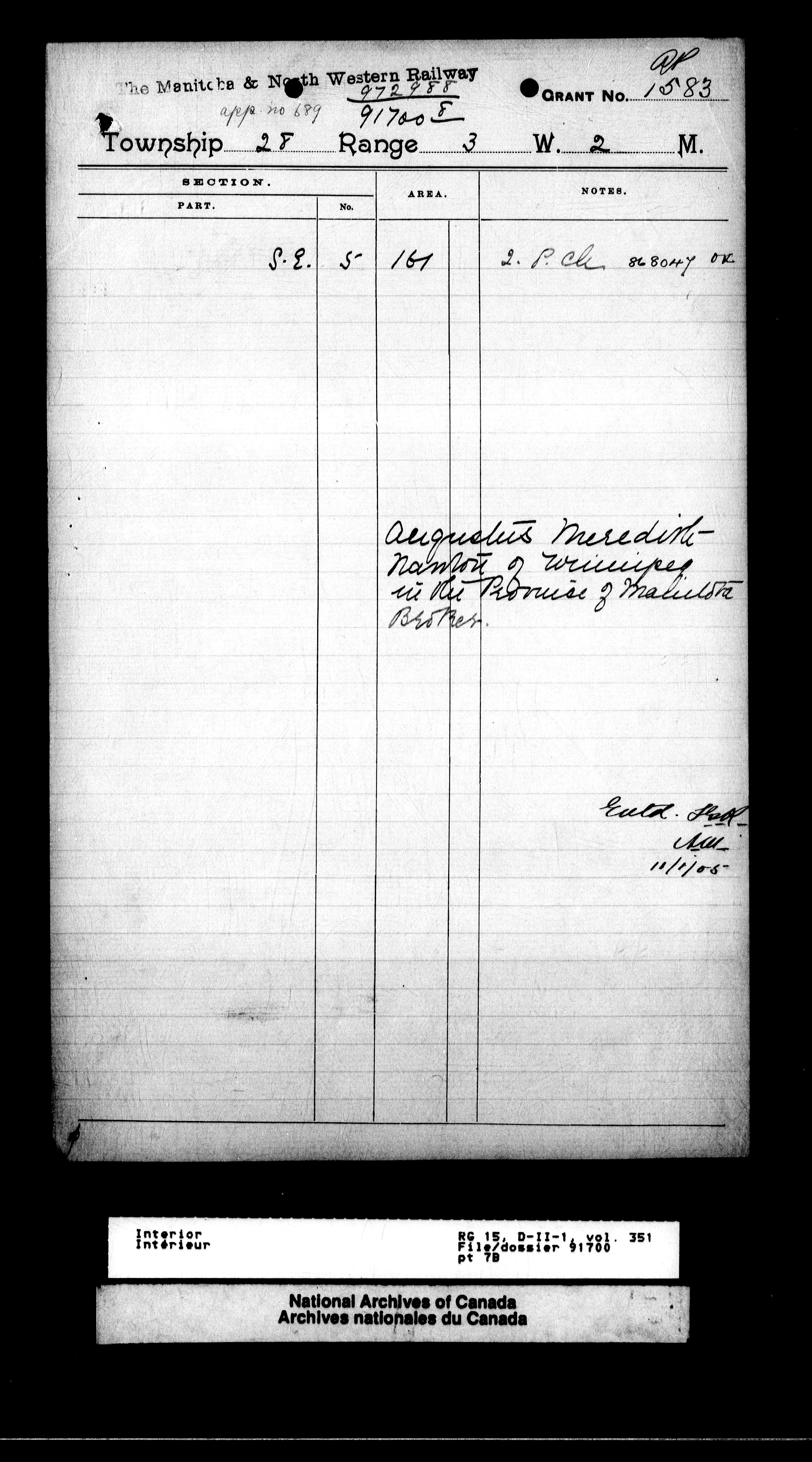 Manitoba and North-Western Railway Company, Land Patent file - 13074