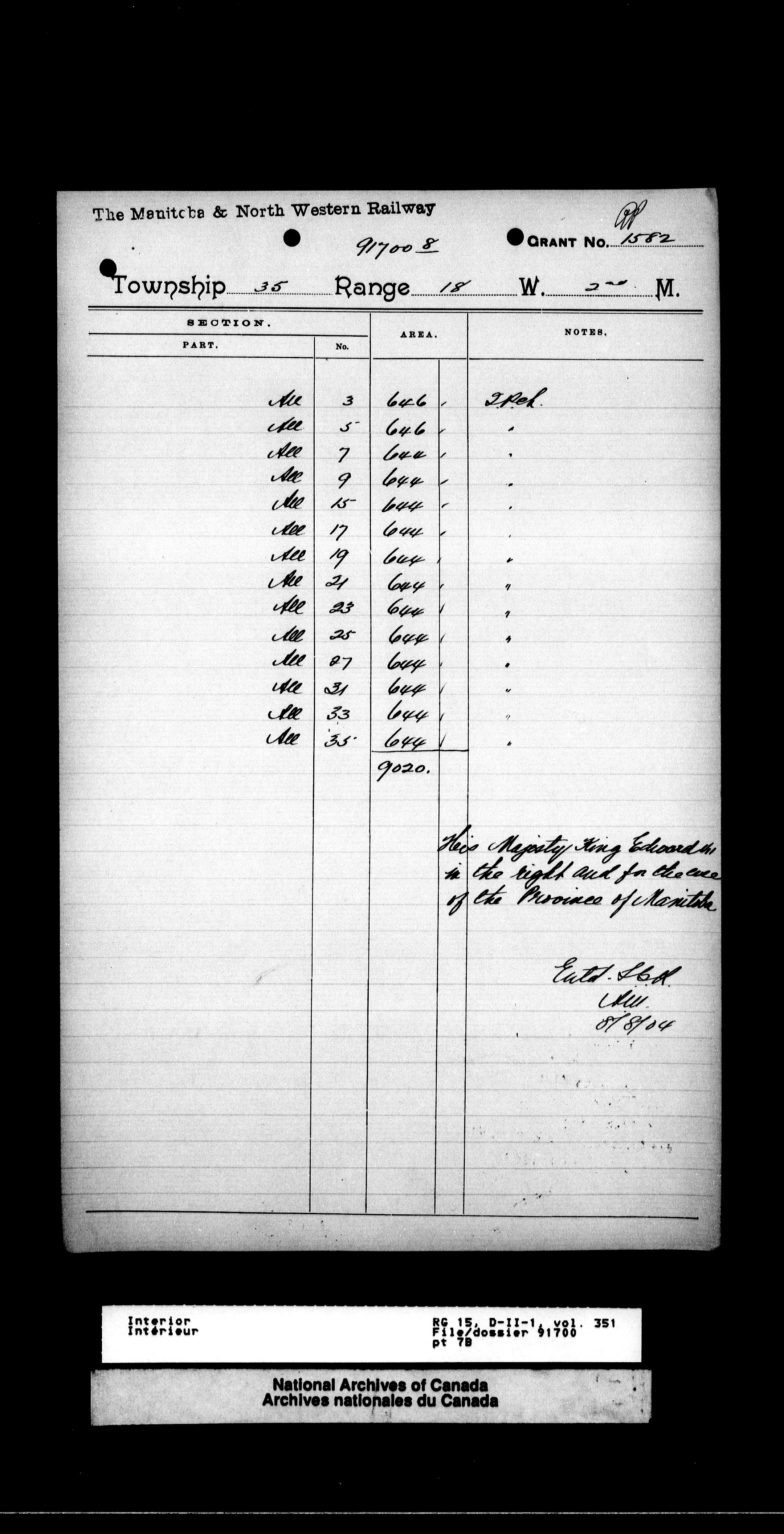 Manitoba and North-Western Railway Company, Land Patent file - 13074