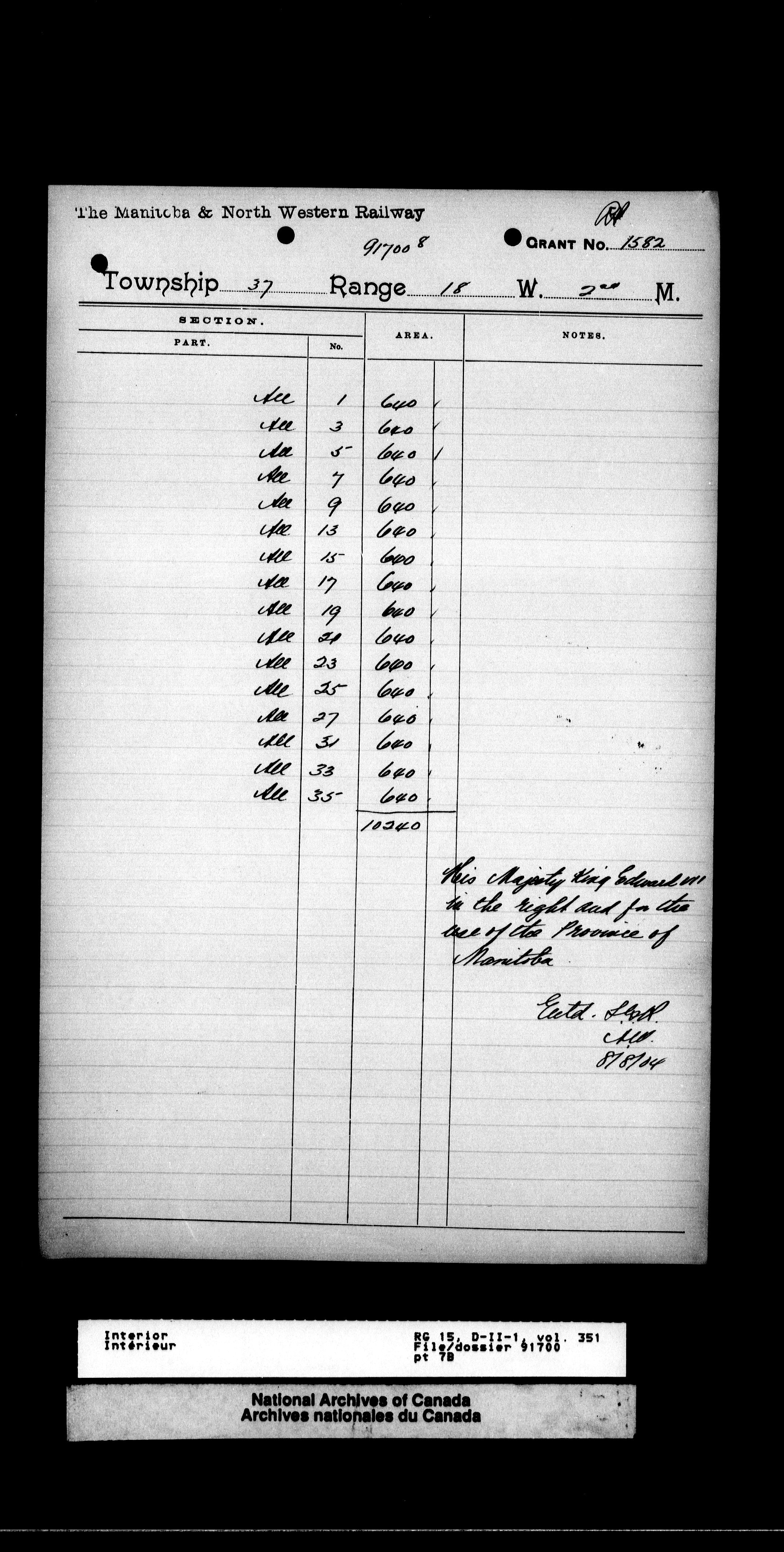 Manitoba and North-Western Railway Company, Land Patent file - 13074