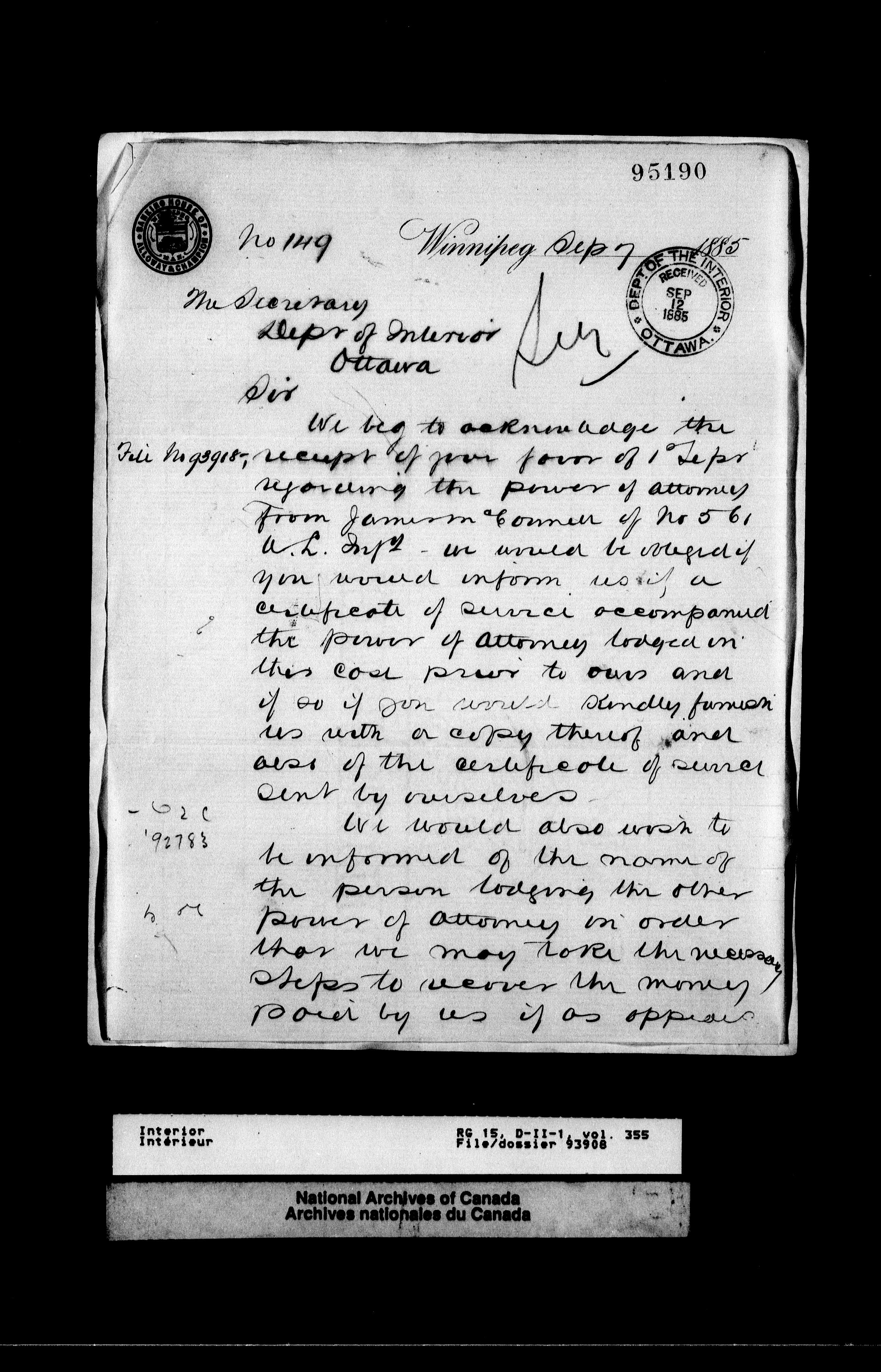 Central registry subject files created by the Dominion Lands Branch - 13077