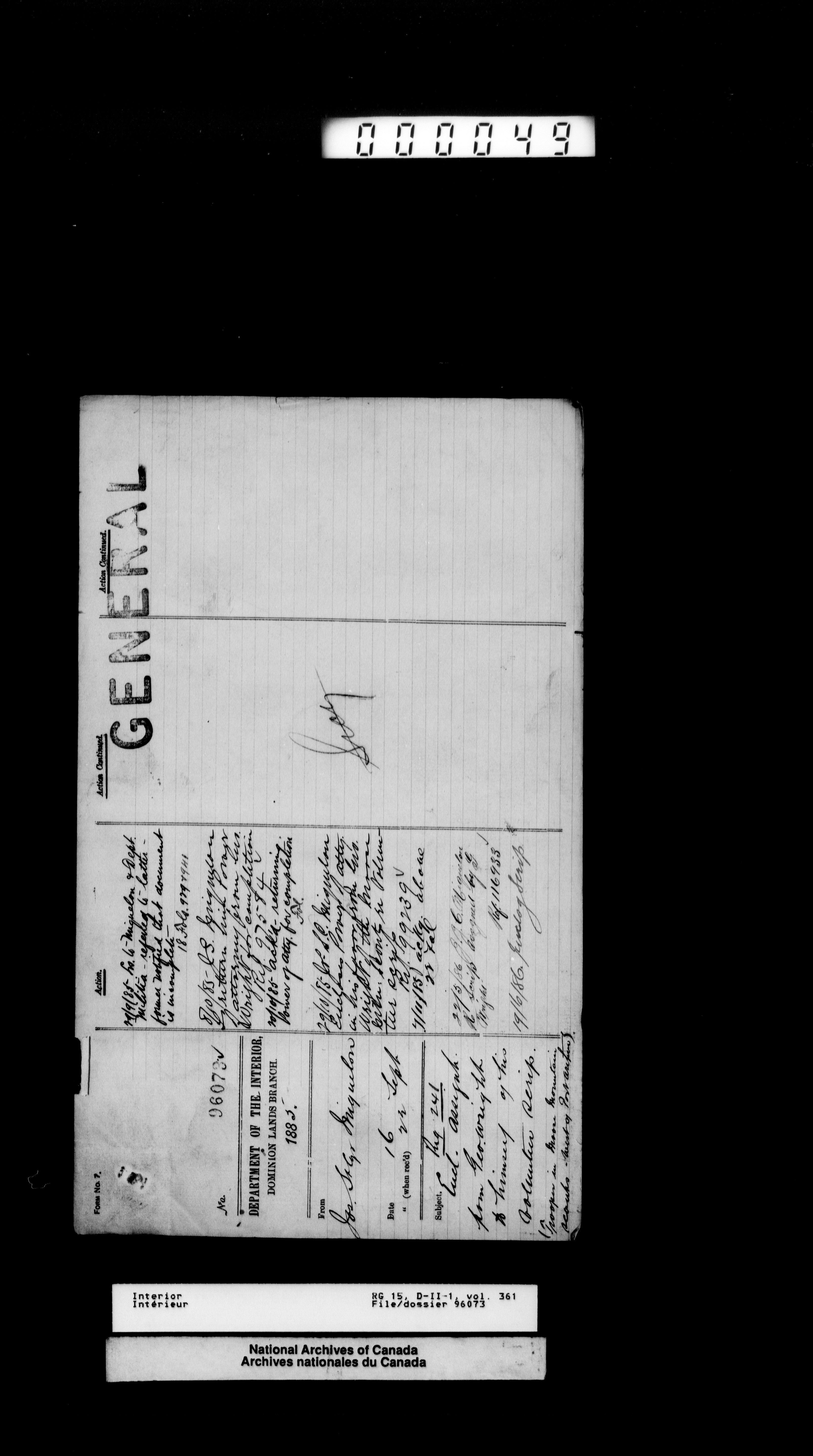 Central registry subject files created by the Dominion Lands Branch - 13083