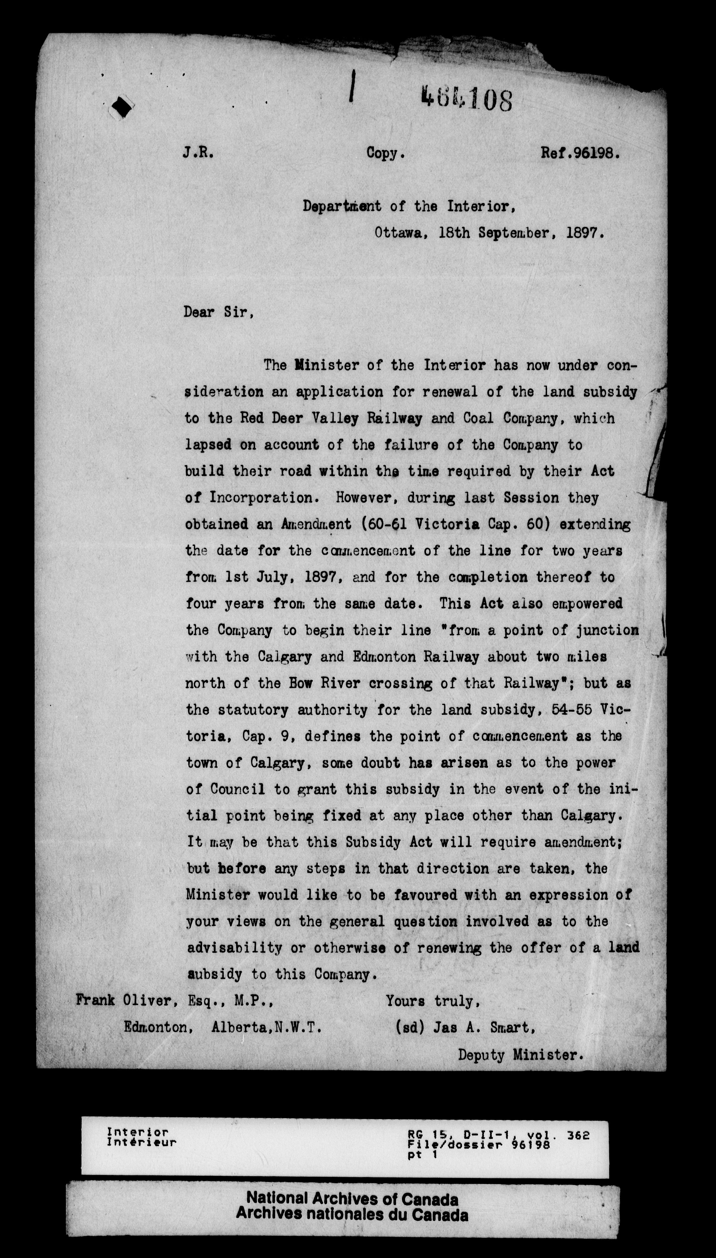 Central registry subject files created by the Dominion Lands Branch - 13084