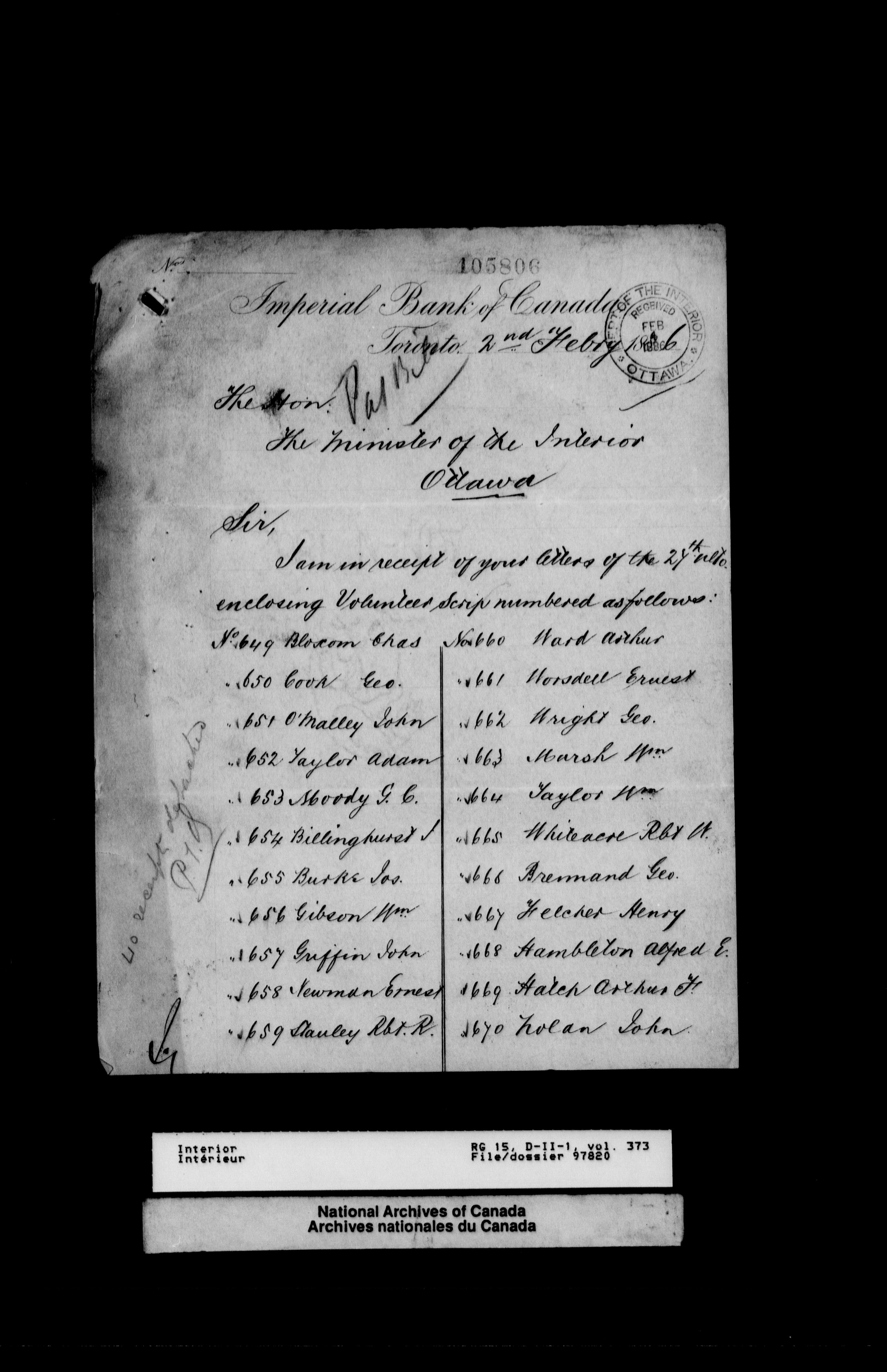 Central registry subject files created by the Dominion Lands Branch - 13091