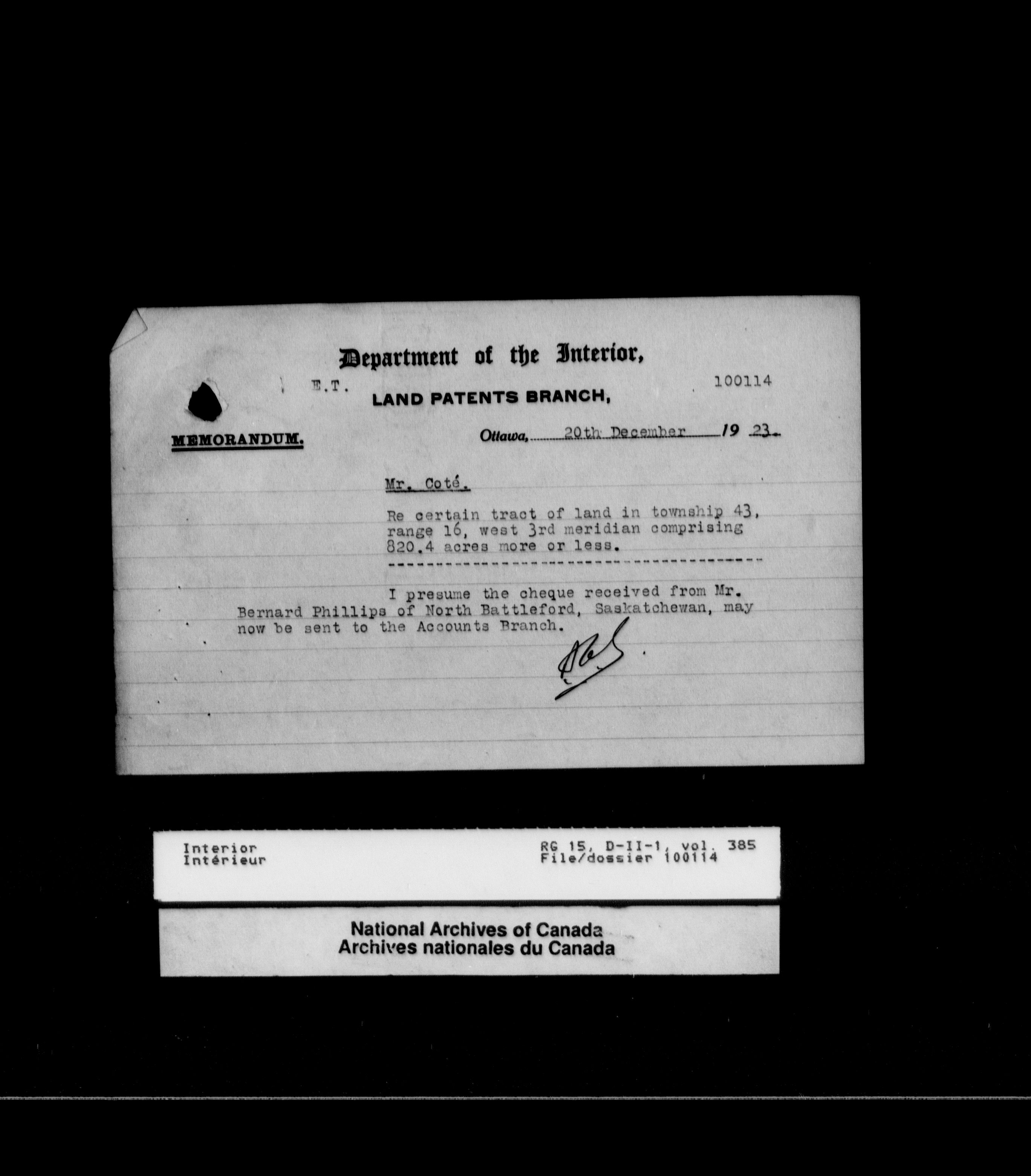 Central registry subject files created by the Dominion Lands Branch - 13097